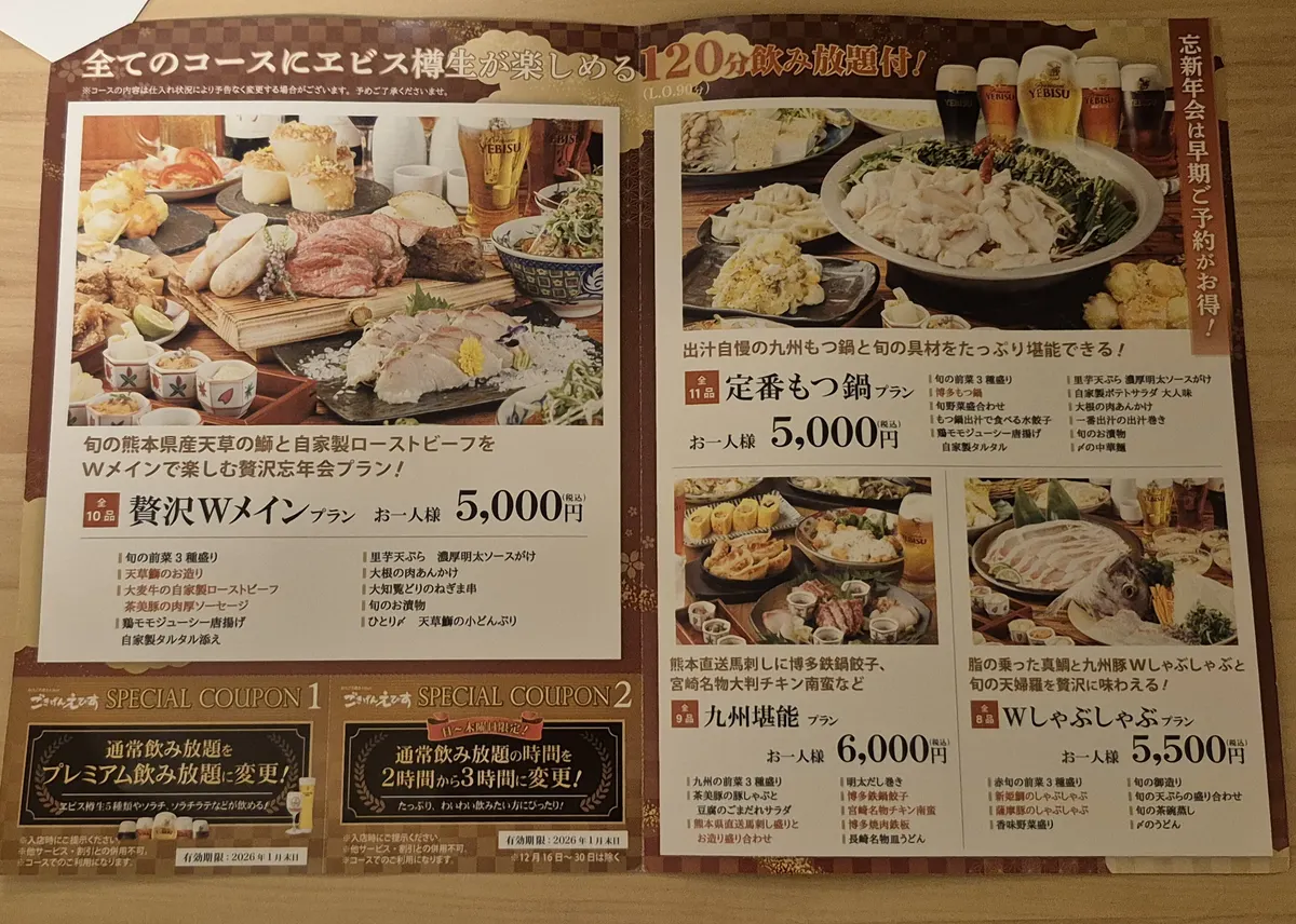 ■お祝いの日に行きたい理由 お祝いの日に九州名物を頂くのも良いのでは…。もつ鍋や鶏すき焼き等の鍋料理とヱビス…相性抜群ですし,これからの季節…身も心も温まるお祝いになるのでは…。2名様より利用可能のコース料理も充実していて,お祝いの日利用に宜しいと思います。テーブル席だけでなく,半個室席もあり,プライベートなお祝いにも良いですね。