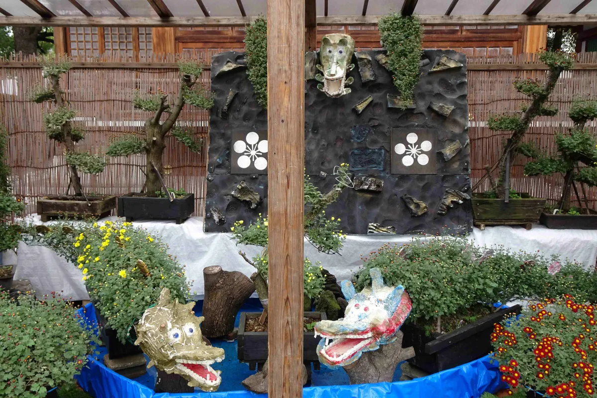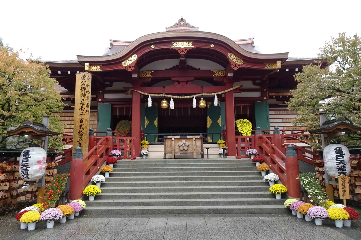 トップ > ヱビスフォト > 季節の写真 > 亀戸天神 なおなおっぴ 2026/01/21 21:59 亀戸天神 11月9日日曜は、まずは亀戸天神の菊まつりを見に行きました。 参道だけでなく、手水舎も菊で飾られています。 手水舎の吐水口は、亀戸だけに亀さんです。 拝殿回りも菊でいっぱいです。 内部の様子ですが、 ご祈祷の際はこうなります。 社殿の右手に、愛好家が出展した菊が飾られていました。 かなり作り込んだ菊の造作物です。 毎年見られる、菊のスカイツリーと社殿の背後に見える実物です。 あとは境内で見かけた花々です。 そして境内を出て、押上方面に向かいました。 いいね 共有する 共有する X facebook LINE リンクをコピー コメントする 1 件の返信 (新着順) ミュートしたユーザーの投稿です。 投稿を表示 legacy 2026/01/22 17:11 菊まつり、いいですね、行ったことないですけど、へー😎👍👏。 いいね 返信する ミュートしたユーザーの投稿です。 投稿を表示 なおなおっぴ 2026/01/22 23:24 legacyさん こじんまりした菊まつりですが、見ての通りいい感じでした。 いいね 返信する