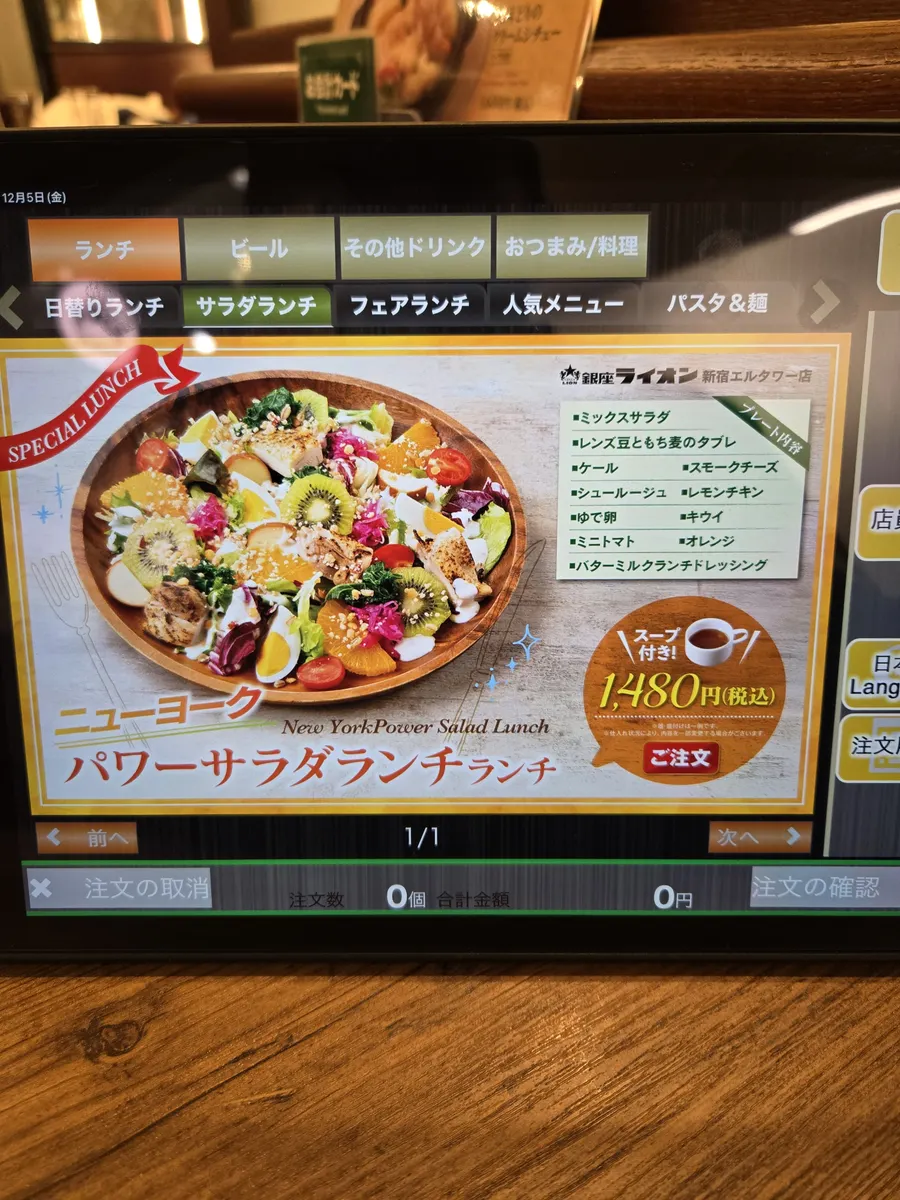マドンナが、私の顔を見たとたん?タブレットを操作して、こちらのメニューはKチーフ考案(私とKチーフが知り合いなのは承知の助)なのでよろしかったら、と。店舗限定サラダランチをオススメ、あまりお腹は空いていなかったけど、私も飲食店長く勤めていて、自分が食べたい料理をオススメしていて、こういうオススメをされると弱いので注文🤣