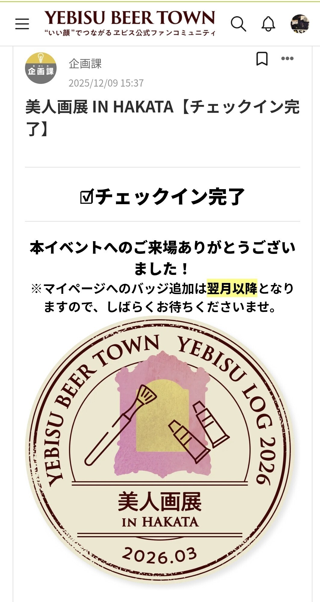 ↑↑↑当然,チェックインしております。これで44個目になる?…。3月の分が4月に付与されればの話ですが…。