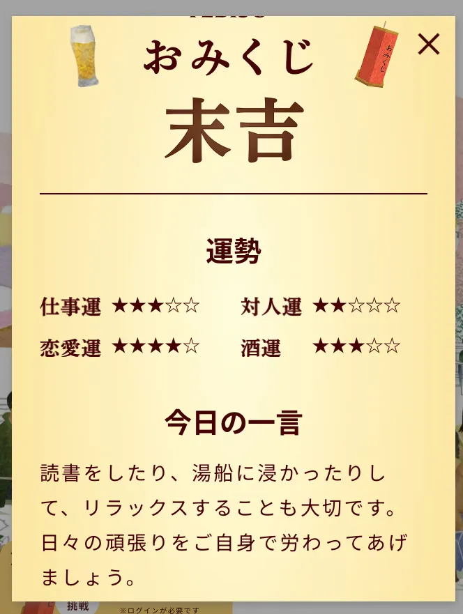 末吉ですね。リラックスは出来ませんでしたが、いろいろ先に進められたからOKな一日でした。あ〜ビール飲みたい… でもまだ水曜日、あと二日頑張ります!