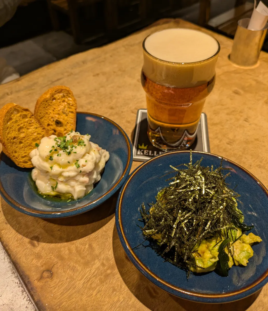 先ずはドリンクが付く前菜セットの3種を注文。飲み物はSORACHI。そして、前菜セットに390円プラスしてチキン南蛮と単品でよなよなエール(小)を頼んだら昼飲み開始 (^m^)