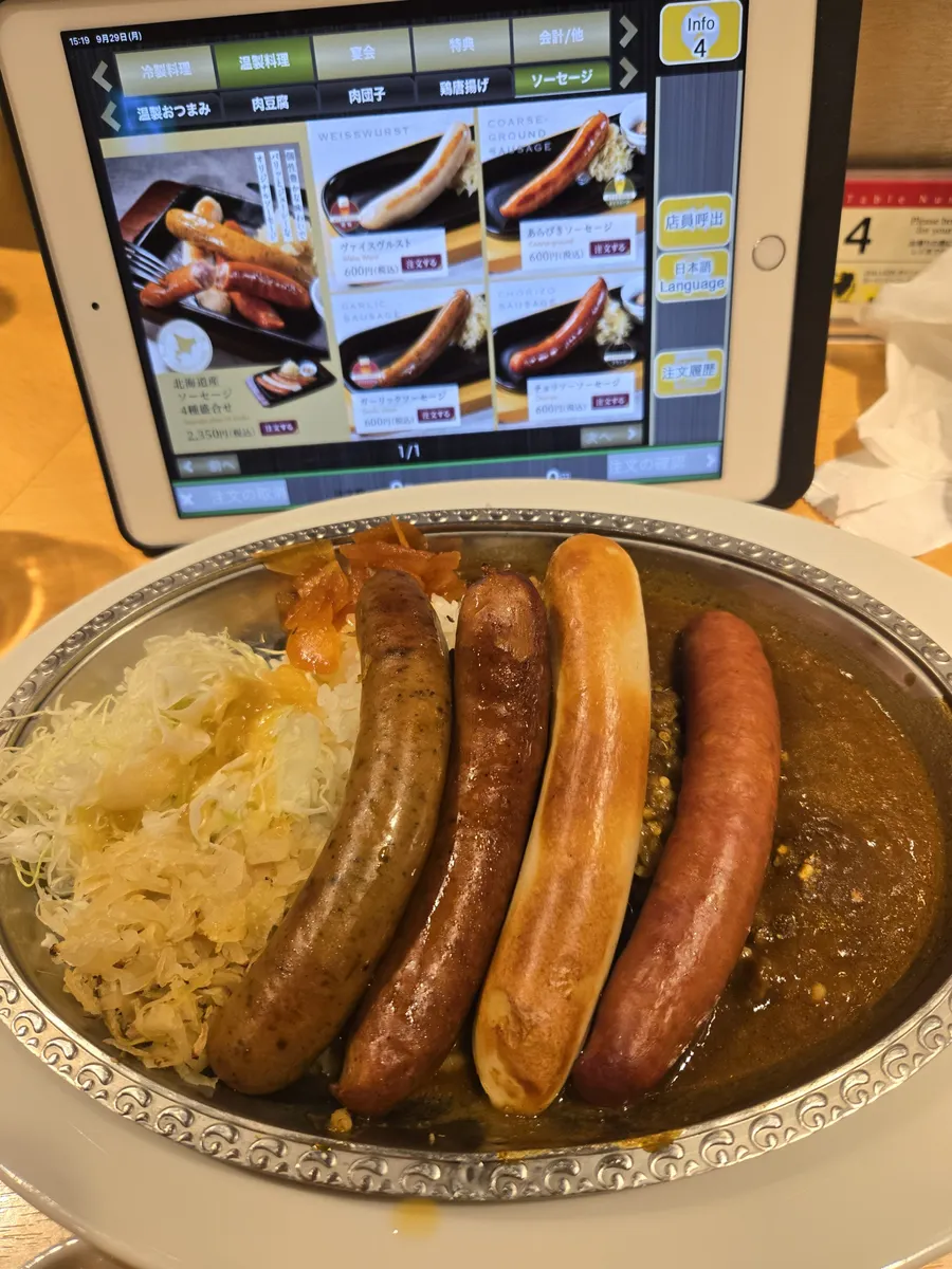 ヱビスバーアプリランキング特典ではソーセージ4種盛りを注文。