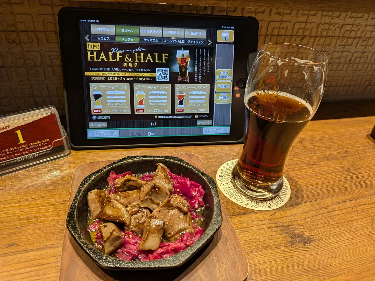 ラムハツグリルとハーフ&ハーフ飲んで終了〜!