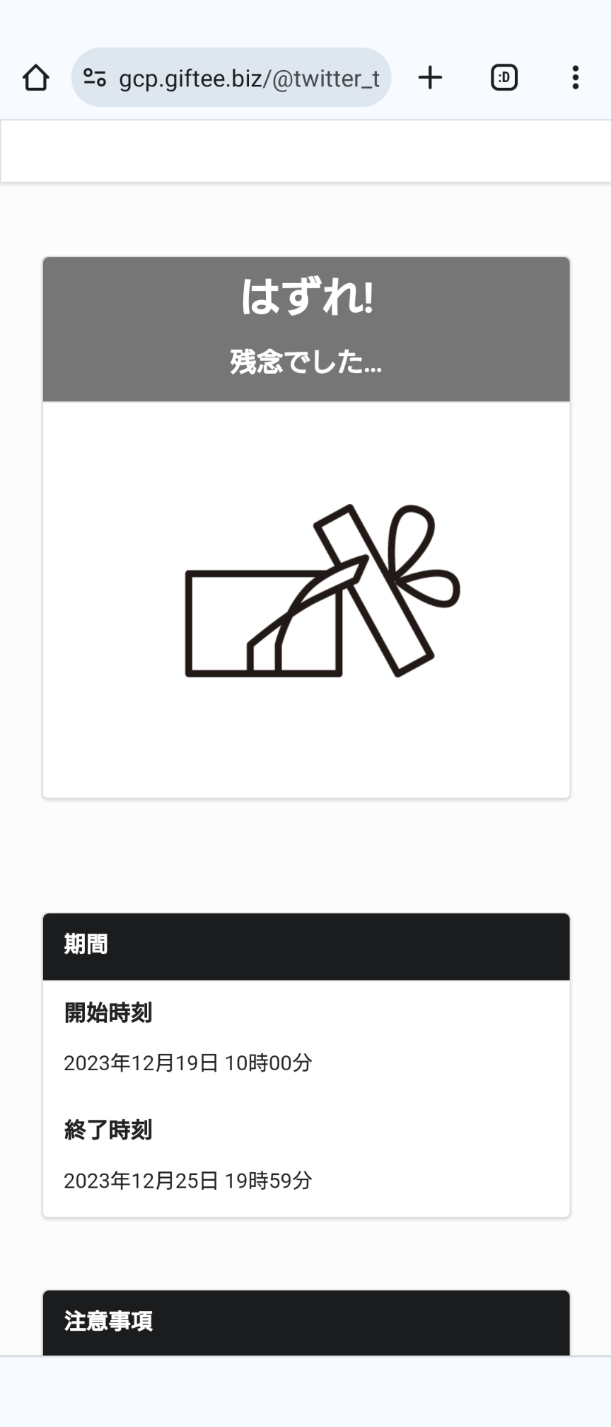 トップ > ヱビスフォト > TikTokLite kuratomin 2023/12/21 21:55 TikTokLite 抽選は、外れました。 いいね 共有する 共有する X facebook LINE リンクをコピー コメントする 0 件の返信 (新着順)