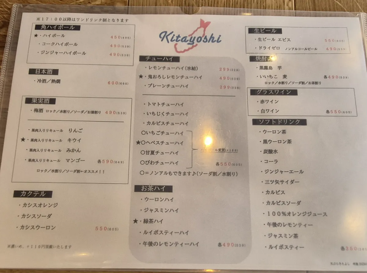 ↑↑本日のおすすめやドリンクメニュー↓↓