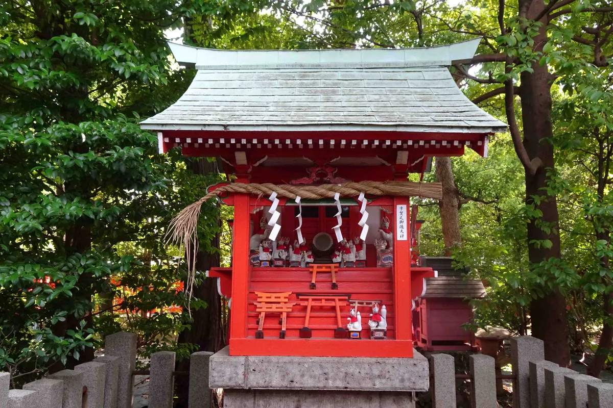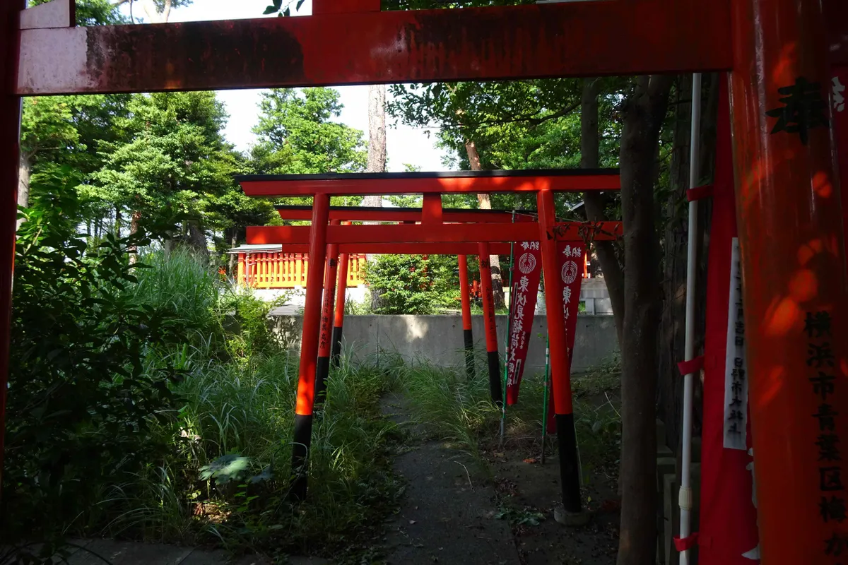 いろんな末社がありましたが、基本的には朱く、こちらは珍しく朱くない末社です。