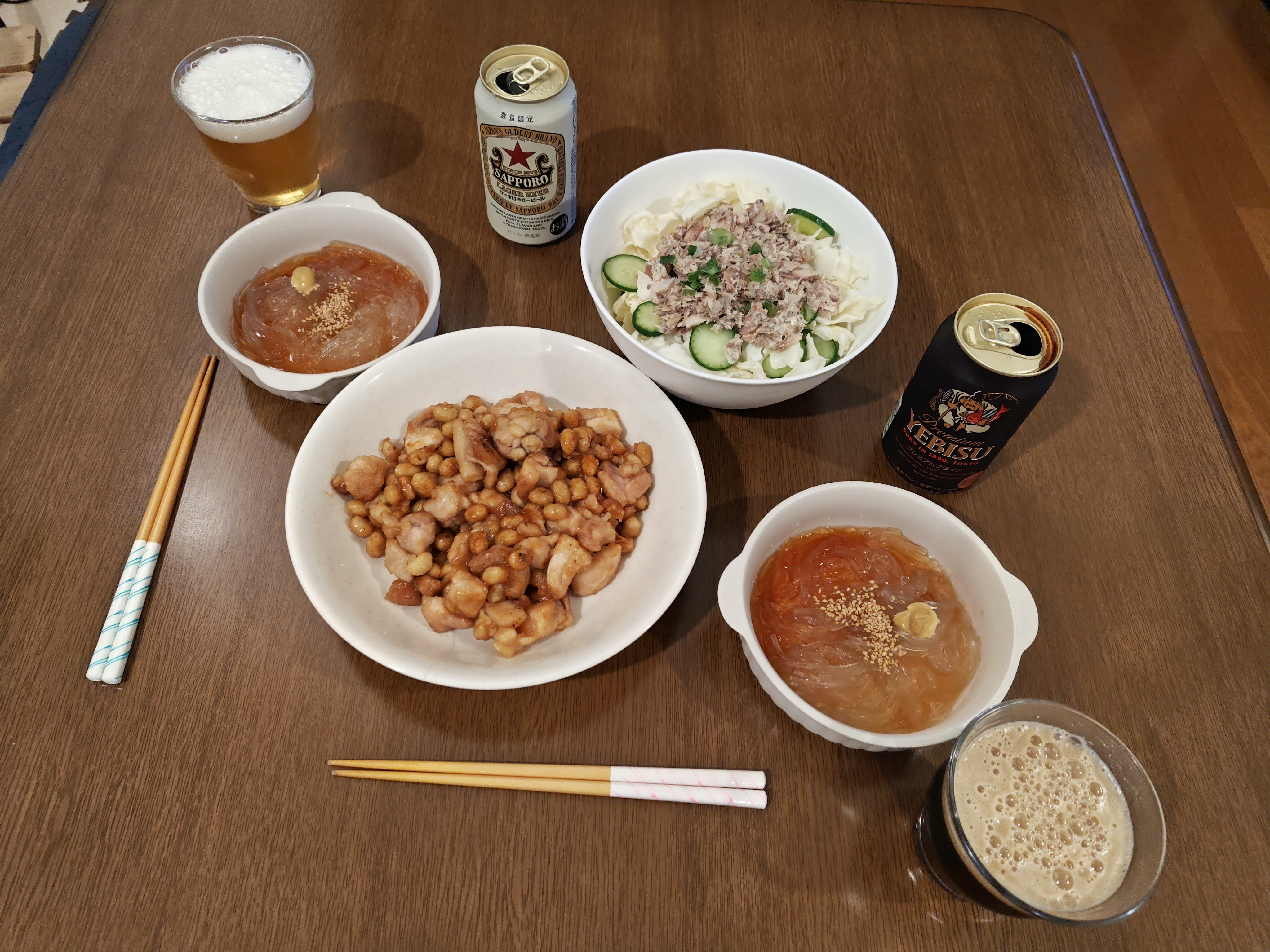 鶏肉と水煮大豆の甘辛炒め🐔🫛