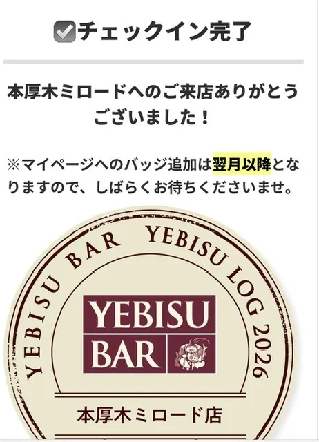 トップ > ヱビスフォト > YEBISU BAR > 乾杯🍻 のぴた 2026/02/20 23:00 乾杯🍻 最初のスタンプはヱビスバー本厚木ミロード店。 タウンの方と乾杯🍻 この後、イベント参加の為に人生初の海老名駅へ🚃 澄深し ヱビスバー いいね 共有する 共有する X facebook LINE リンクをコピー コメントする 1 件の返信 (新着順) ミュートしたユーザーの投稿です。 投稿を表示 ヱビス狂 2026/02/26 16:09 のぴたさん ロマンスカーミュージアムからの🍛 楽しかったです😆 いいね 返信する