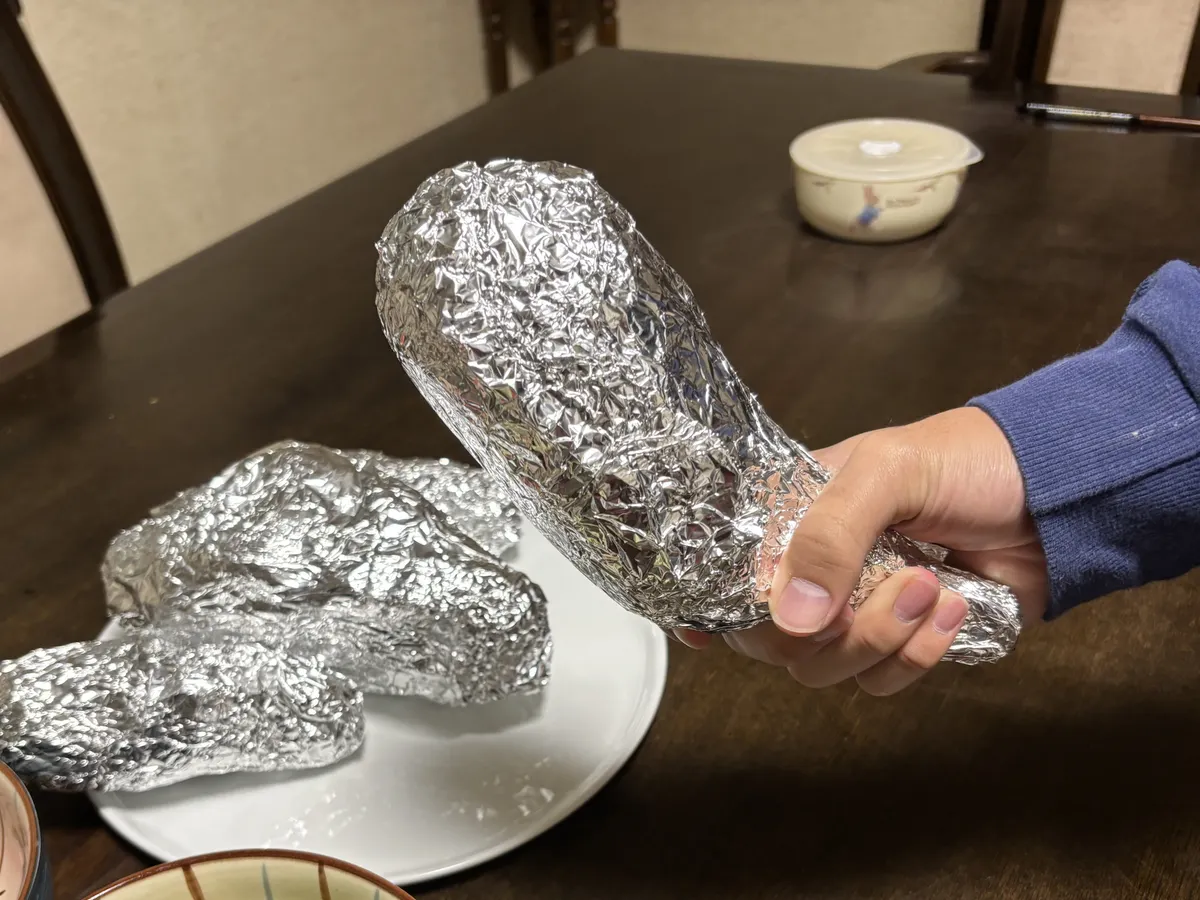 蛇足ですが、付け合わせに作った焼き芋の揚げ焼き、元の焼き芋がすごかった↓