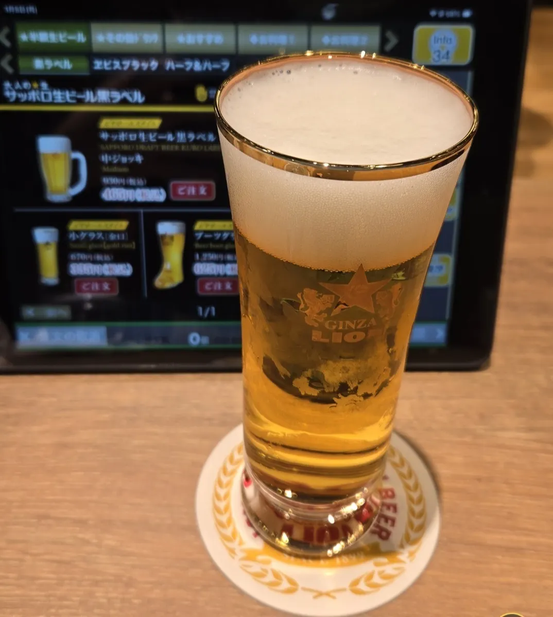 3杯目はサッポロ黒ラベル金口グラス🍺