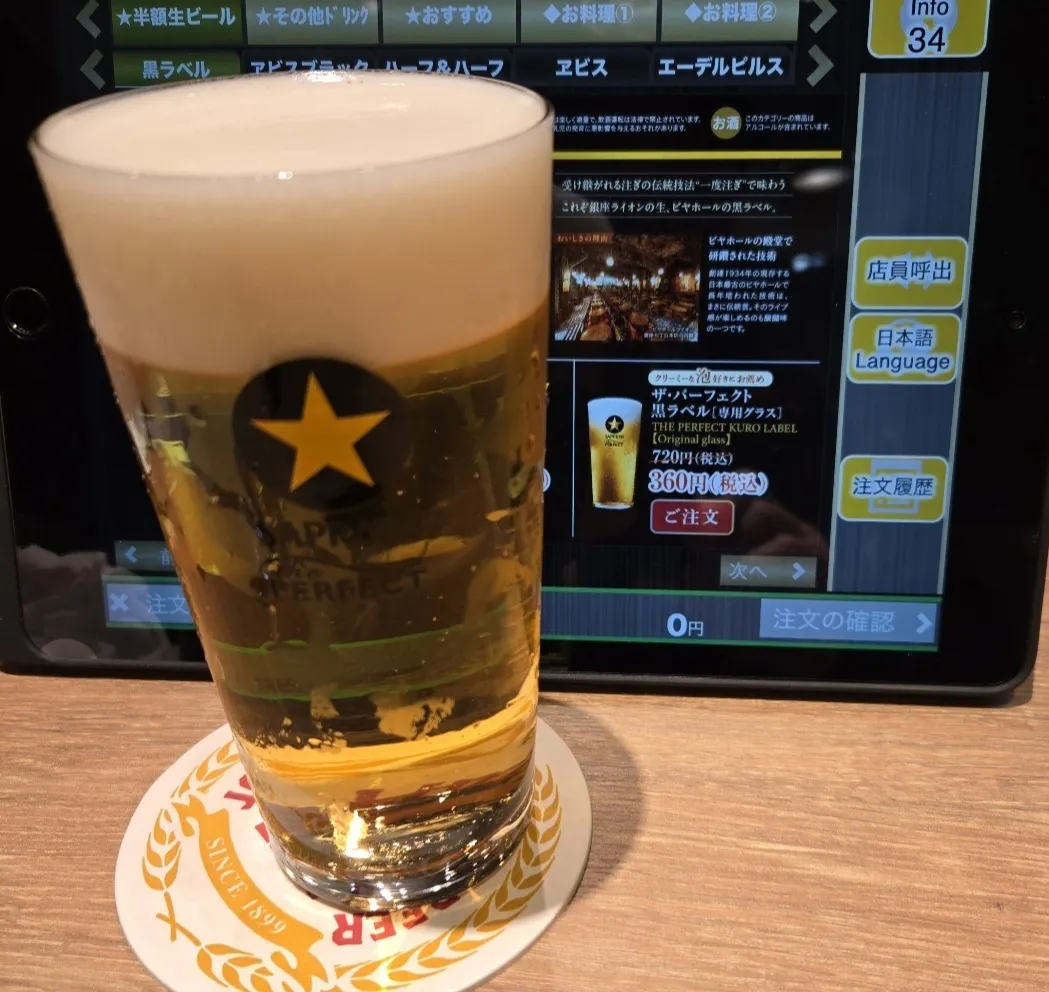 4杯目は久しぶりのパーフェクト黒ラベル🍺グラスが変わってから容量がわからないのですが、1度注ぎより価格が高いのが気になっていて、価格が変わってから初めて注文しました😅
