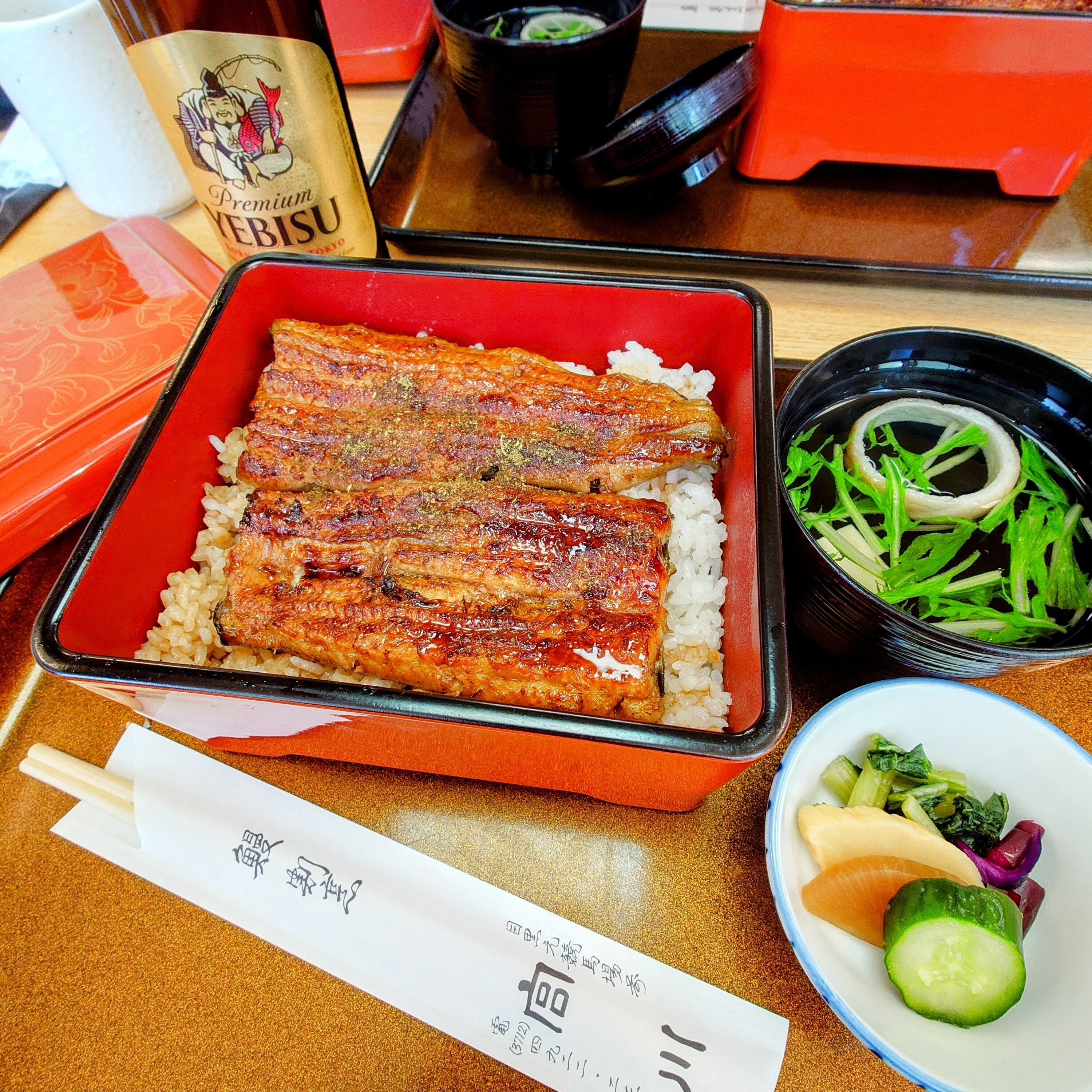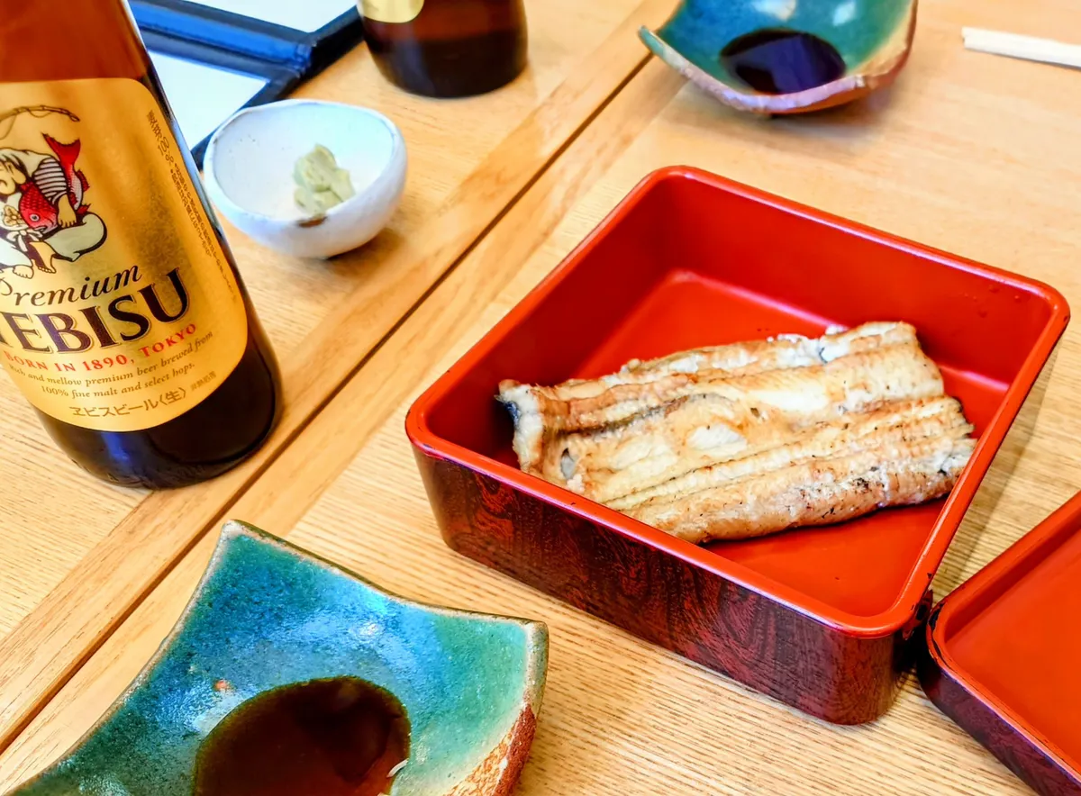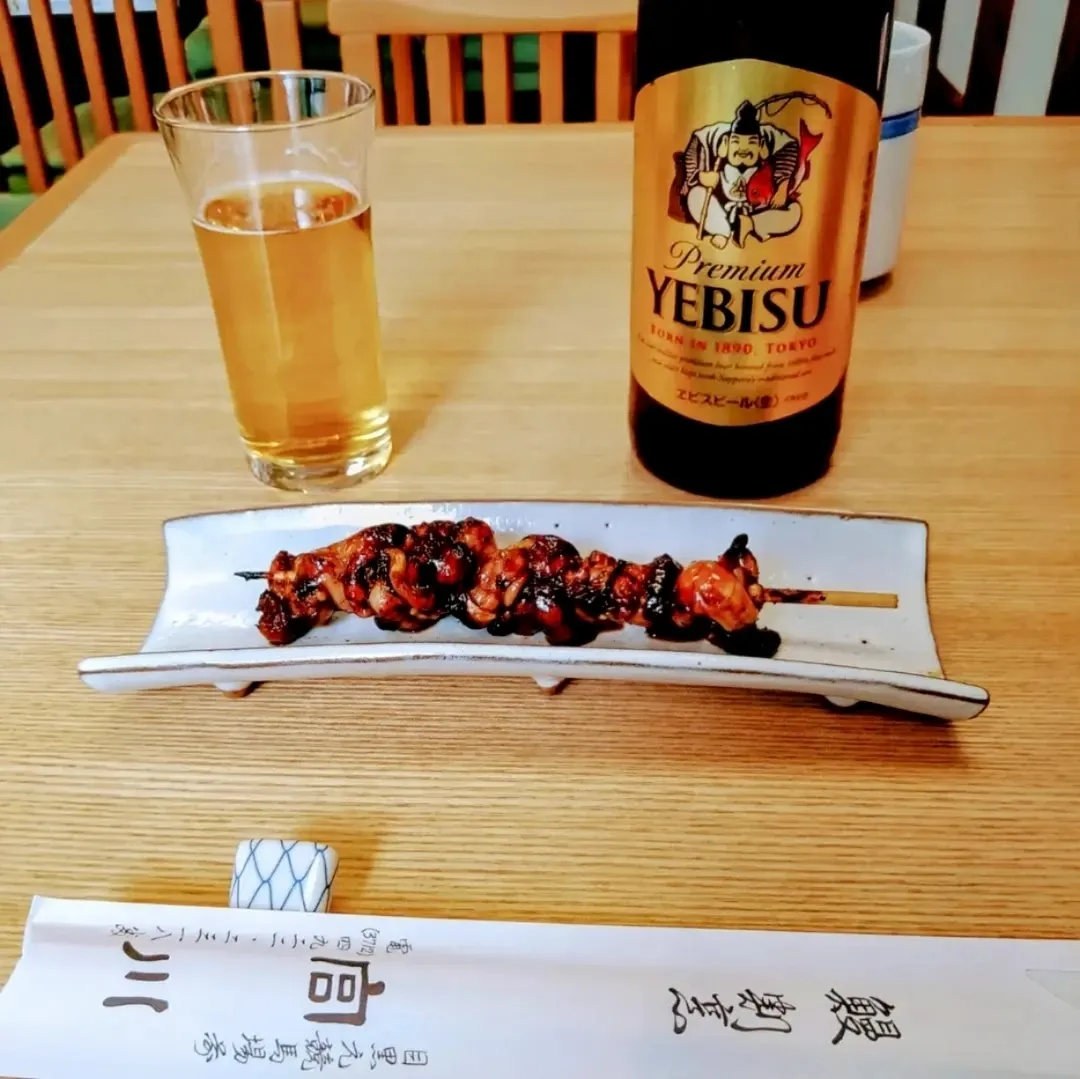 ▼白焼、蒲焼どちらにもヱビスは合います!白焼は山葵のツーンがいいんです