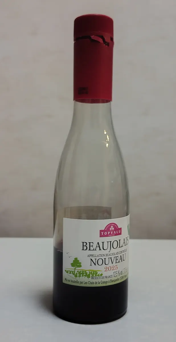 今宵飲んでいるのは、近所のイオンで買ってきた、ボージョレ・ヌーボーのハーフボトル(苦笑)