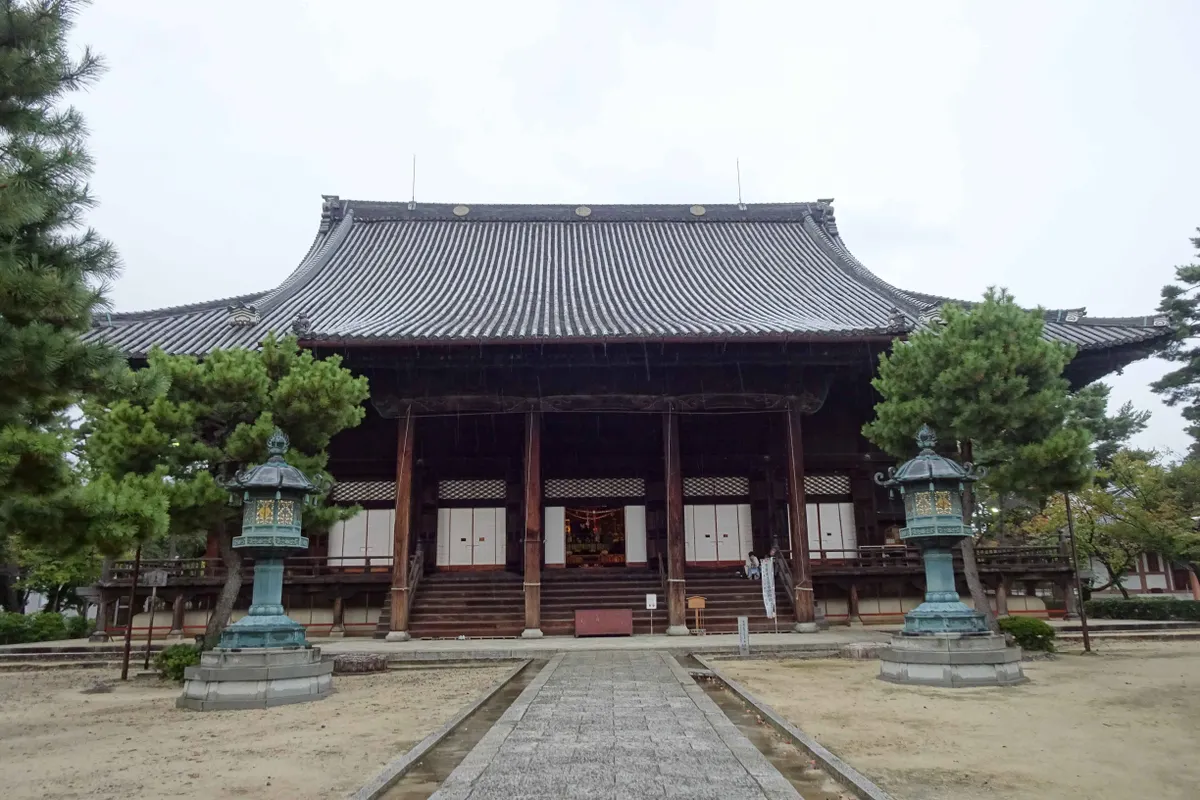 東大路通に出て北に向かい、百万遍の交差点に来ると、交差点の北東側に百萬遍知恩寺があります。