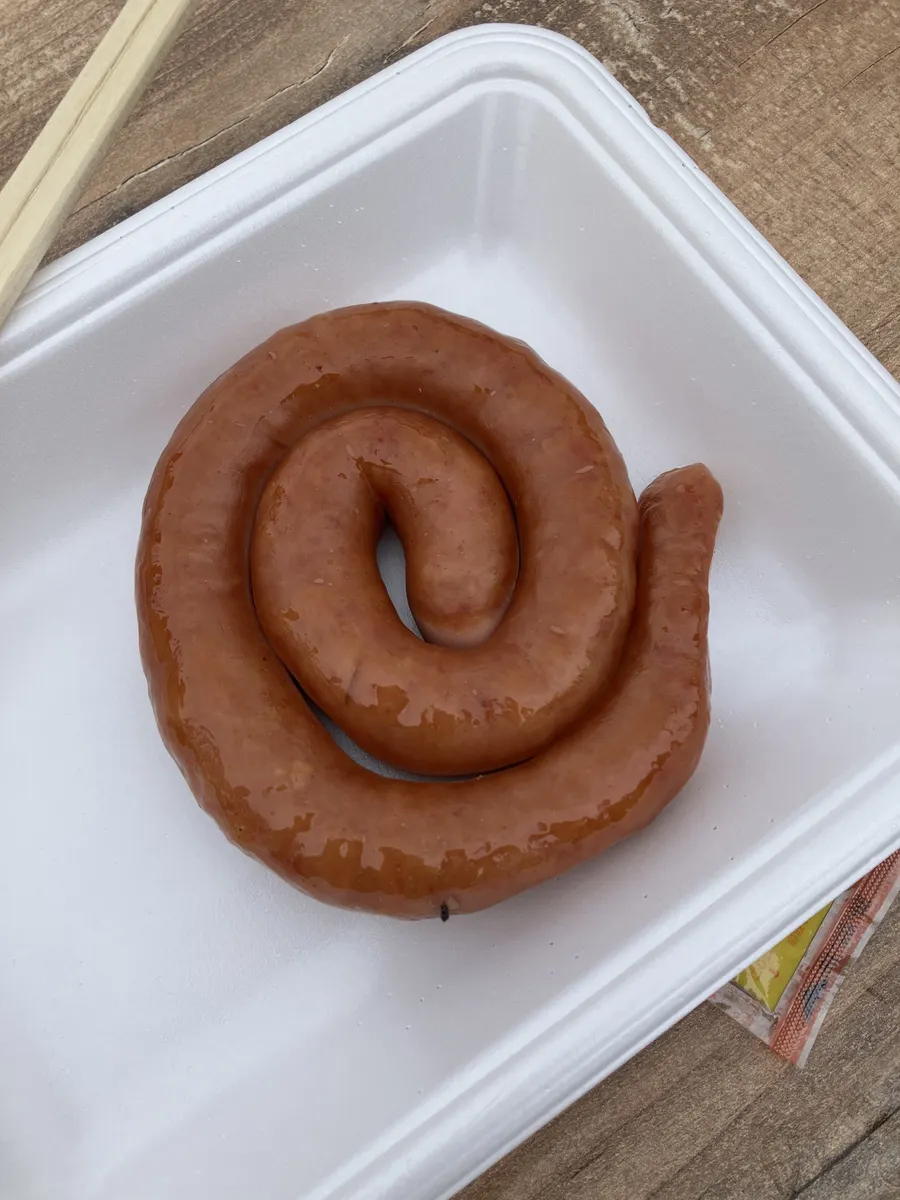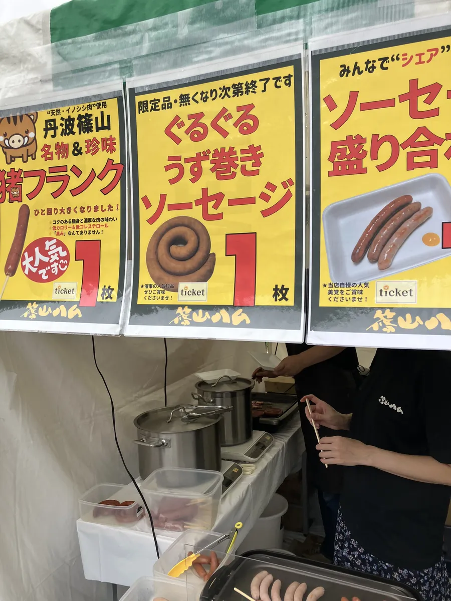 何か食べなきゃとなり、篠山ハムさんのぐるぐるうず巻きソーセージを。