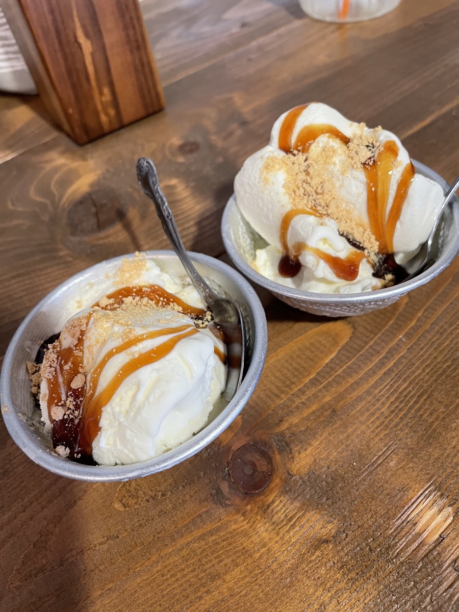 グレープフルーツジュースと、デザートの黒蜜のアイスでクールダウン🧊