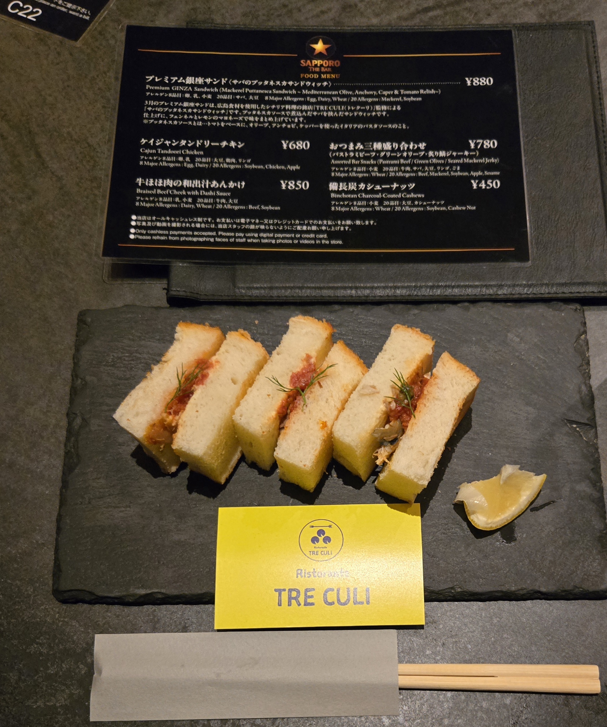トップ > ヱビスフォト > グルメ・料理 > 久しぶりの銀座黒ラベルTHE🌟BAR🍺 丸くなるな、★星になれ。 2026/03/23 05:51 久しぶりの銀座黒ラベルTHE🌟BAR🍺 今月の銀座サンドはTRECULI(トレクーリ)監修のサバのブッタネスカサンドウィッチ🥪 高価ですけど限定品に弱い😅 美味しかったです😊 いいね 共有する 共有する X facebook LINE リンクをコピー コメントする 0 件の返信 (新着順)