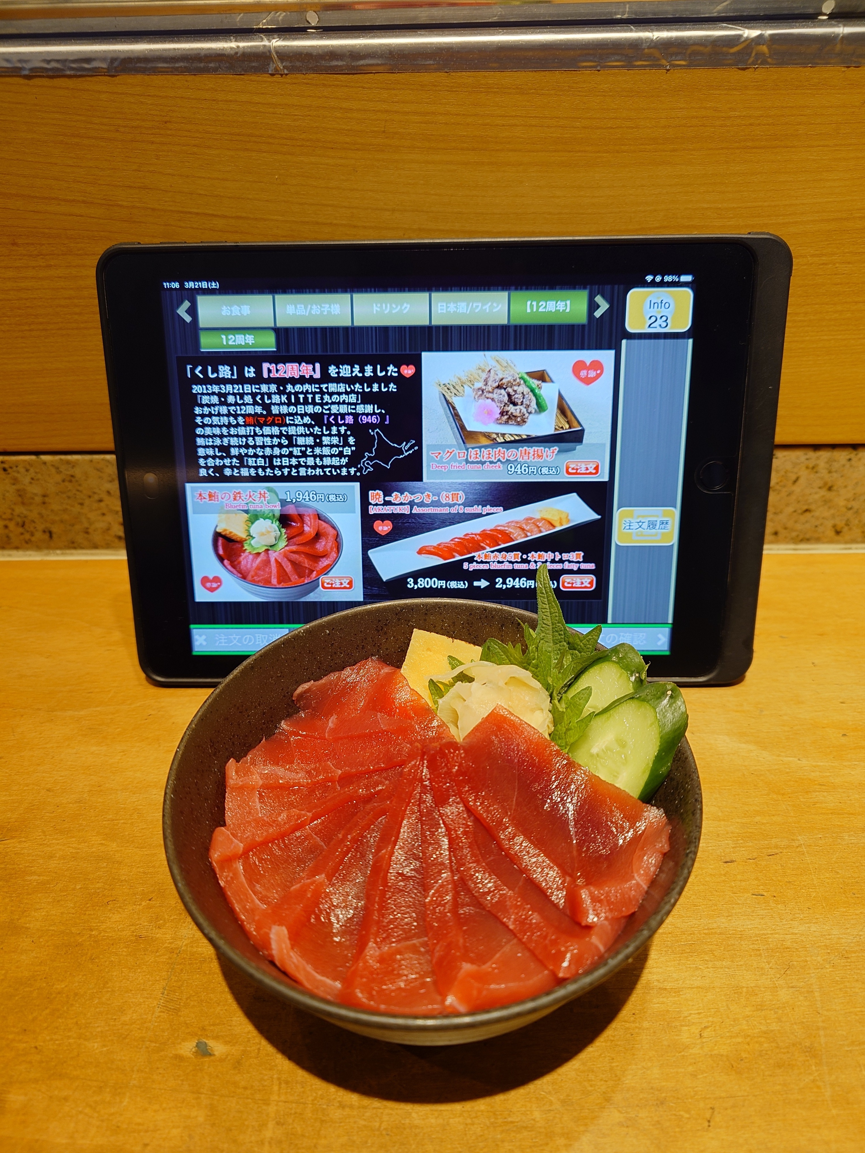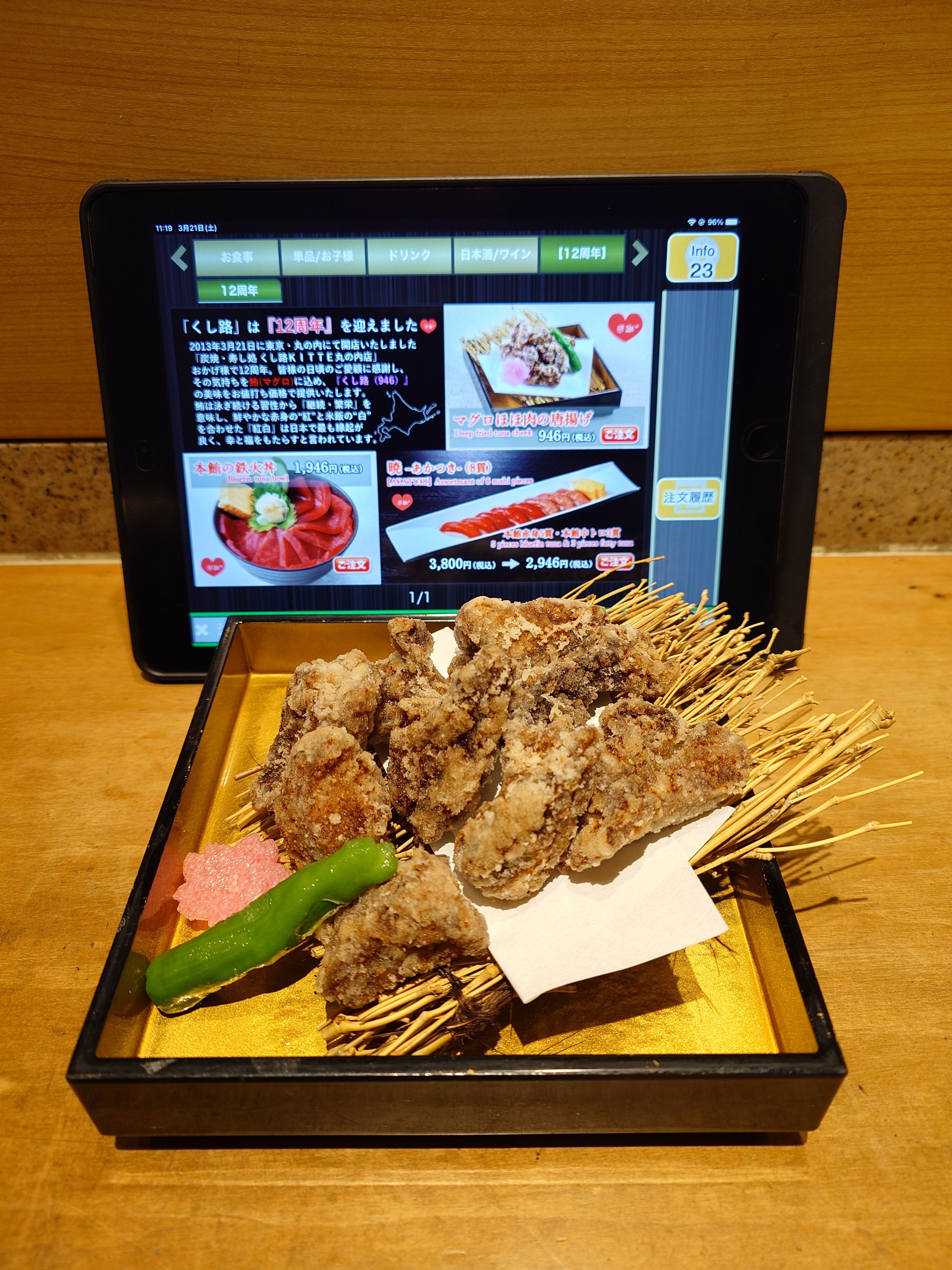 本当は寿司🍣も注文したかったのだが通常メニューをプライスダウンしているので、周年メニューと思われる2種類に絞り込んだ😉