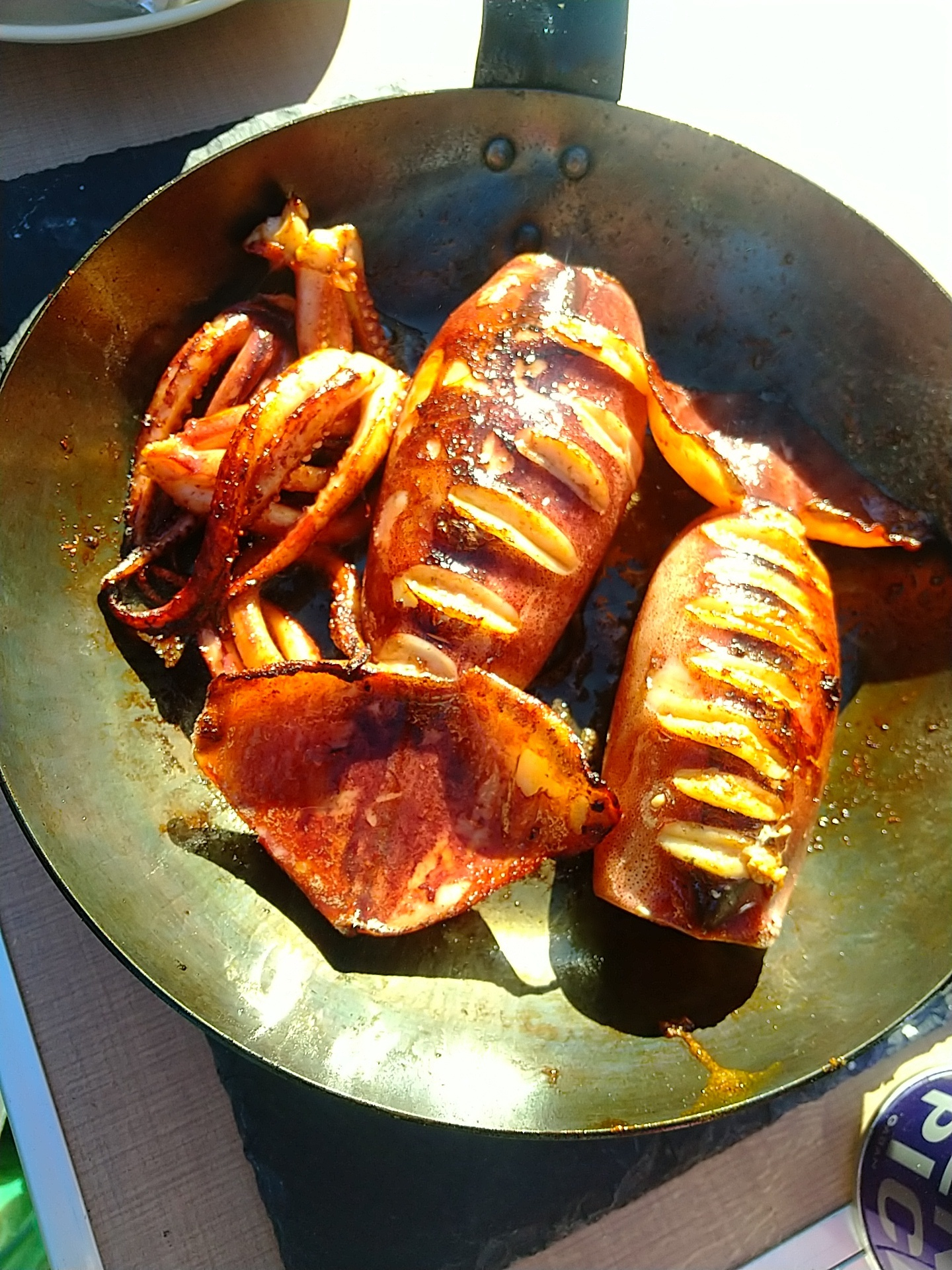 酒+味醂+醤油を混ぜて烏賊の焼けたフライパンにジュッ!