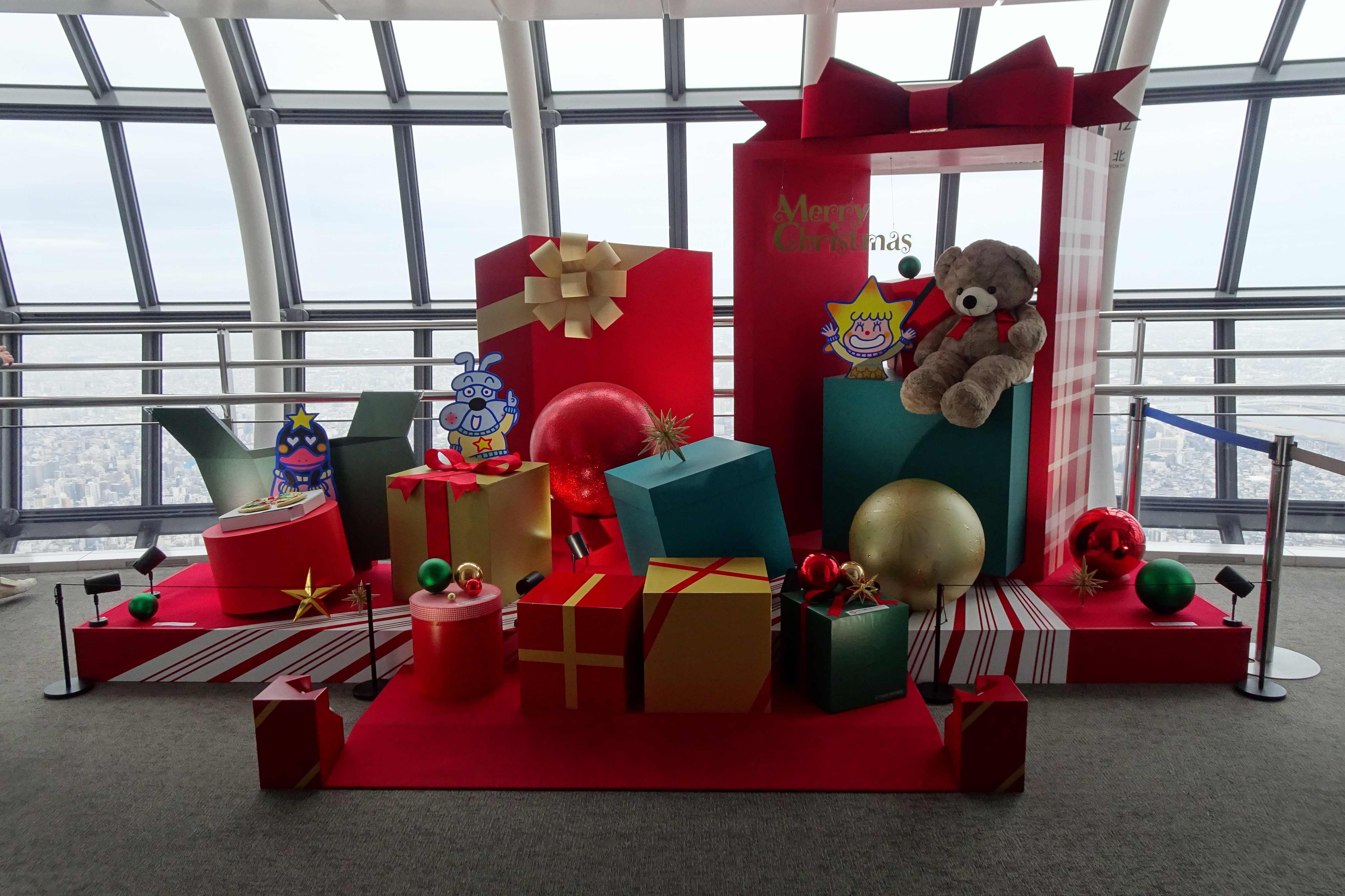 そしてまずはスカイツリーですが、入口のところにクリスマスツリーがあり、ソラカラちゃんがいました。