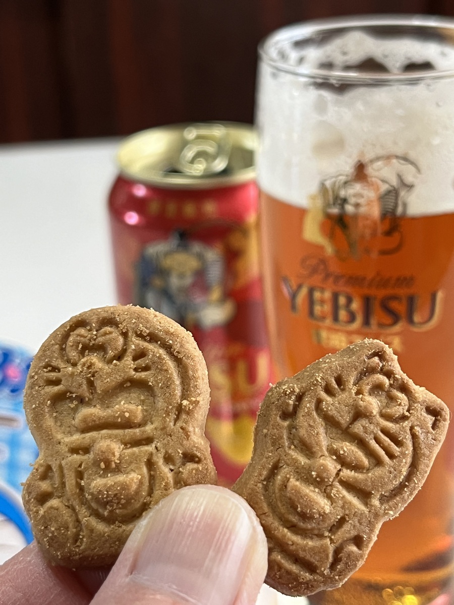 バター香るドラえもんクッキーとヱビスで 今日も1日お疲れ様でした✌️