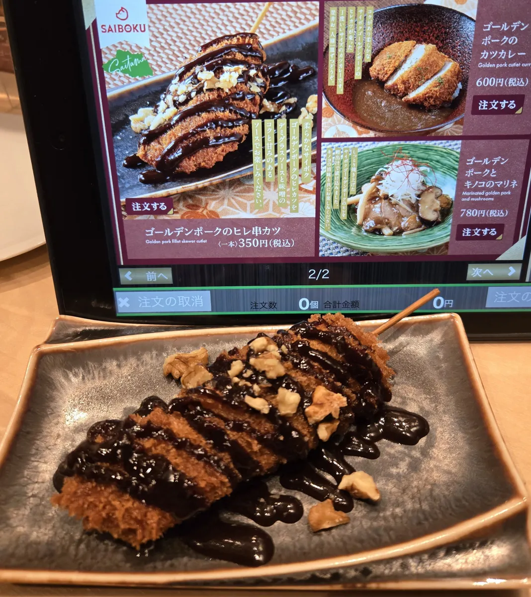 ヒレということで、こちらもやわらかく、デミ味噌ソースも美味しかったです😊1本350円。