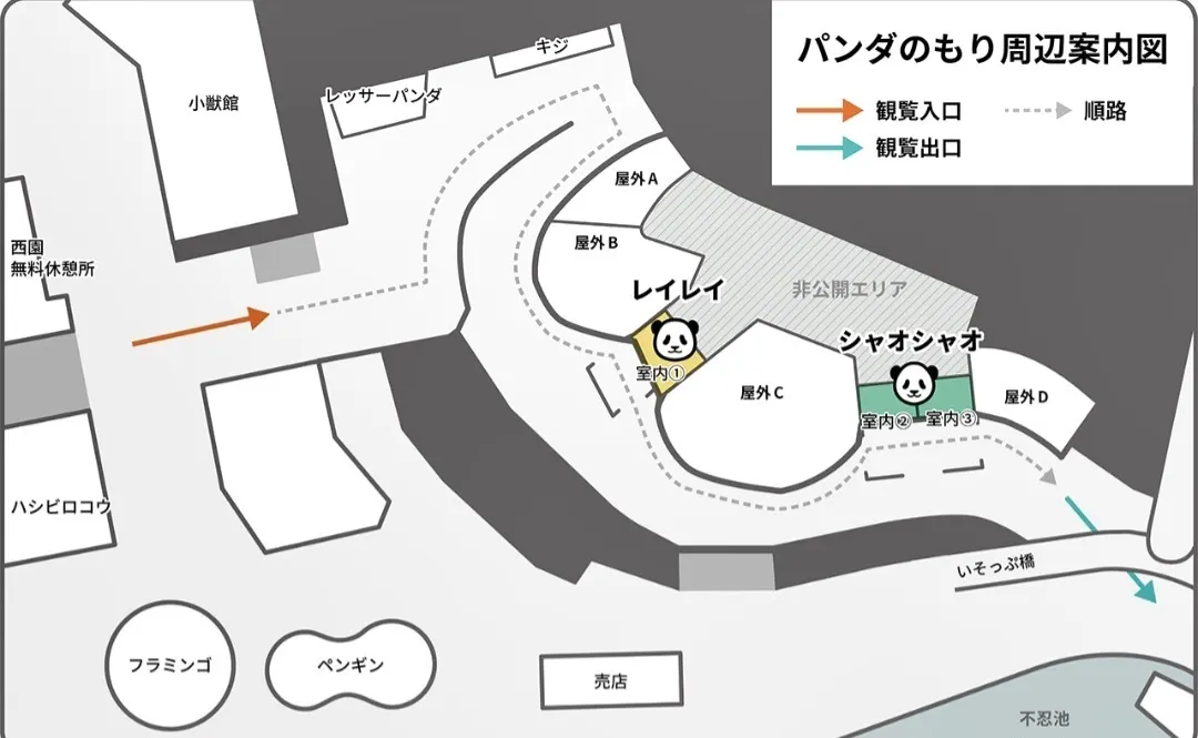 シャオシャオとレイレイは検疫の為か?別々のエリアにわかれていて、各エリア1分の観覧で移動という貼り紙みたいなものが掲示してありましたが、各エリアが2つに仕切りがあって、順路を入って手前の仕切りで1分、奥の仕切りで1分、各エリアで2分ずつ、2つのエリアで計4分見れました🐼