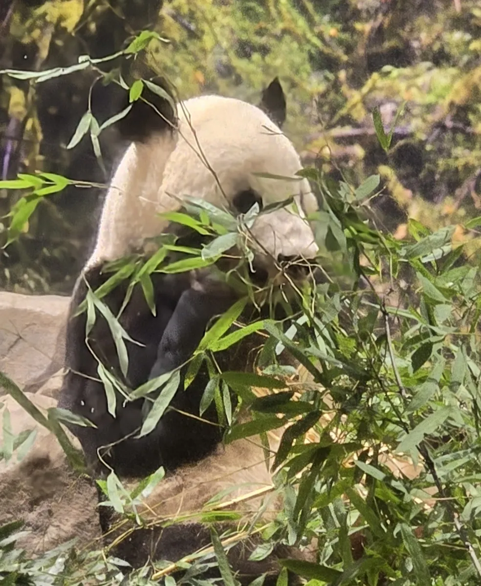シャオシャオは横向きで笹を食べていて、まあまあ撮れました😅