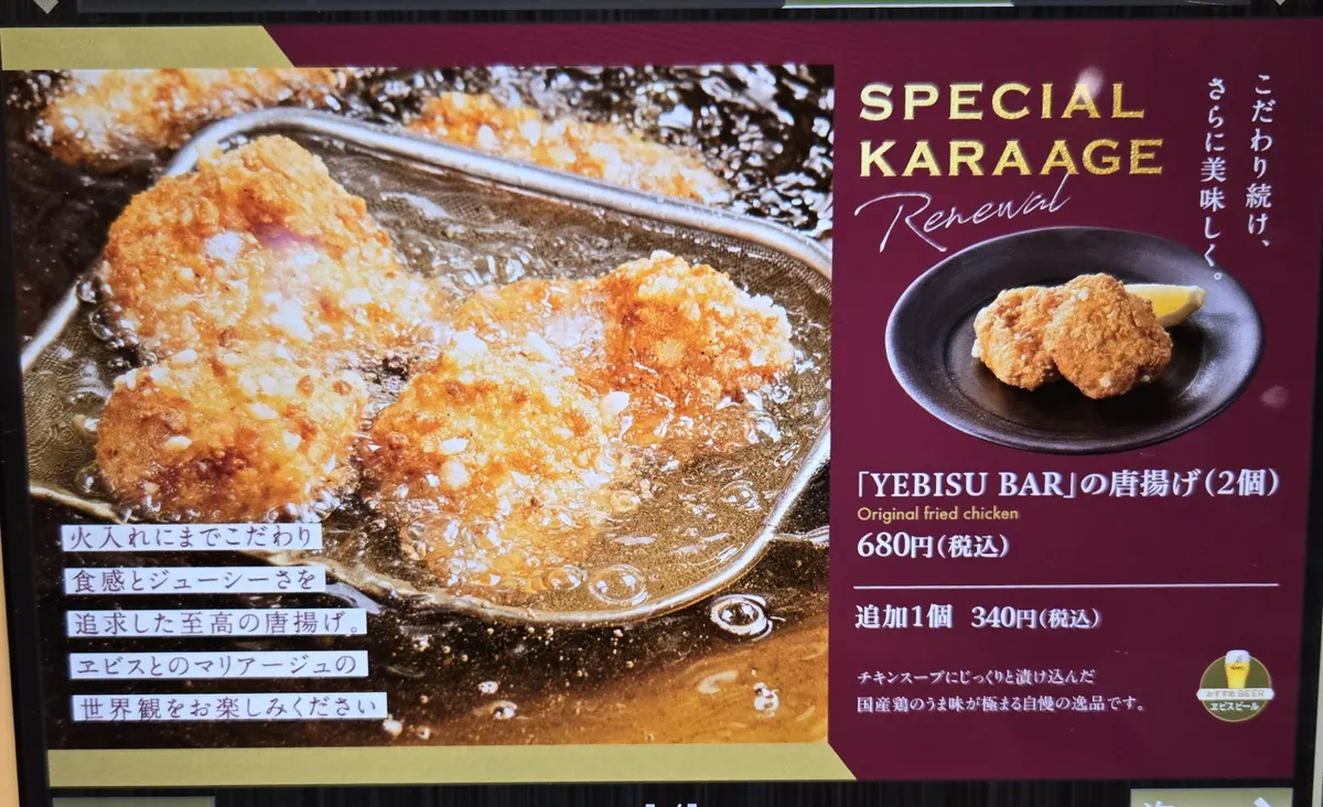 投稿を表示1つしか選べなかったらヱビスと「YEBISU BAR 」の唐揚げにします😎👍。