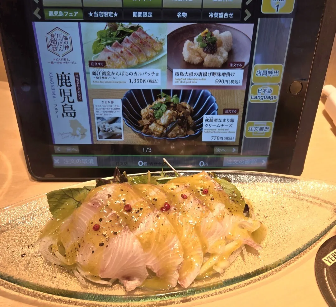 錦江湾産かんぱちのカルパッチョ~柚子胡椒ソース~