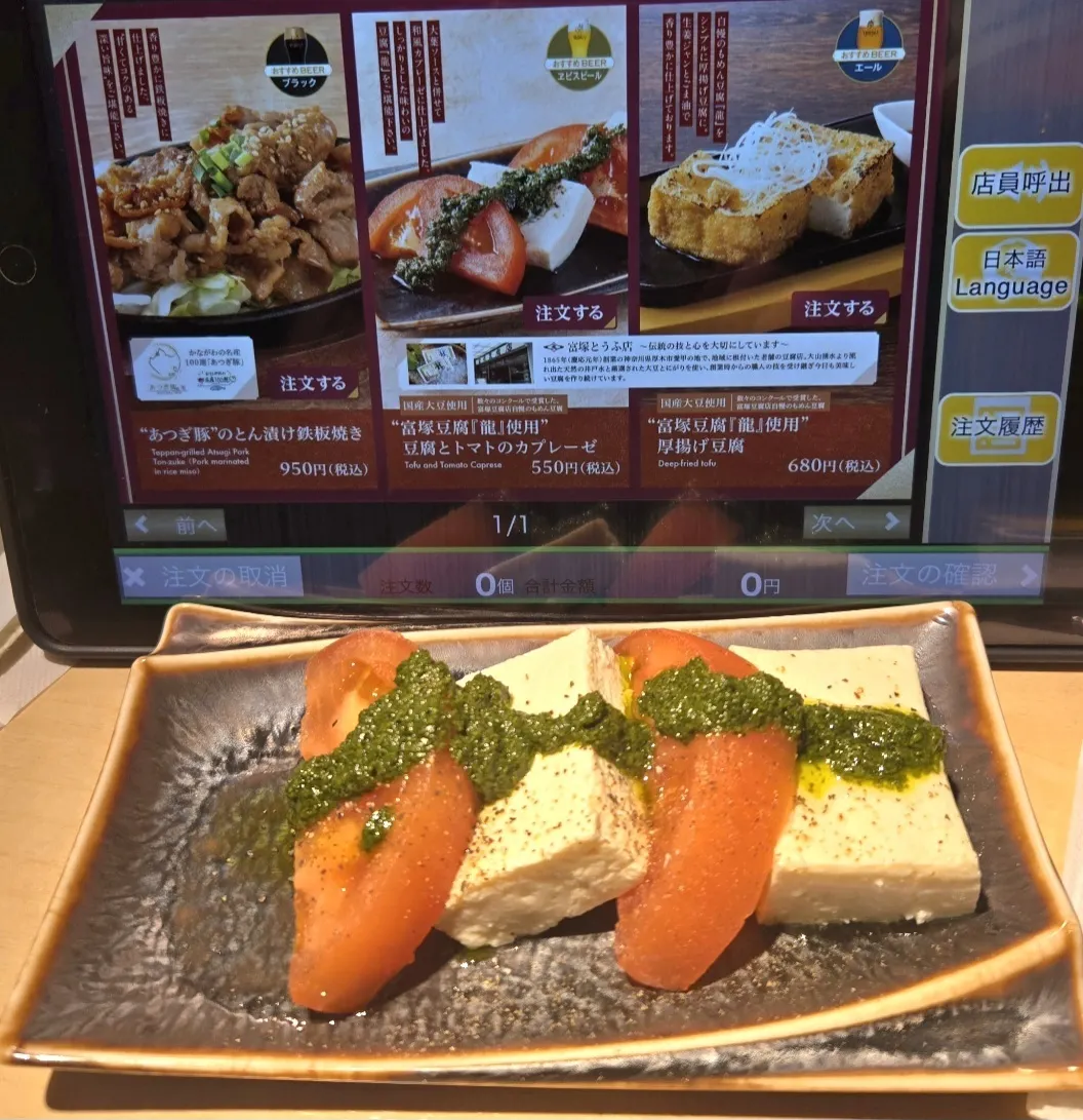 続いて厚揚げ豆腐。タブレット画面では大きな豆腐を揚げてからカットした画像ですけど、提供された商品はカットされた物を揚げてありました。どっちでもいいんですけどね🤣