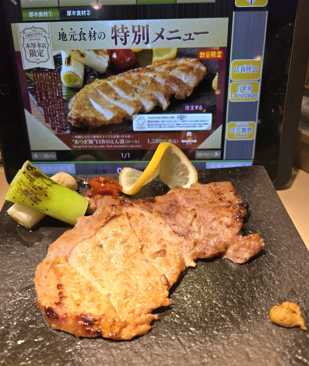 満腹中枢もおかしくなって、食べようか迷っていた"あつぎ豚"臼井のとん漬け(ロース)を注文🐷
