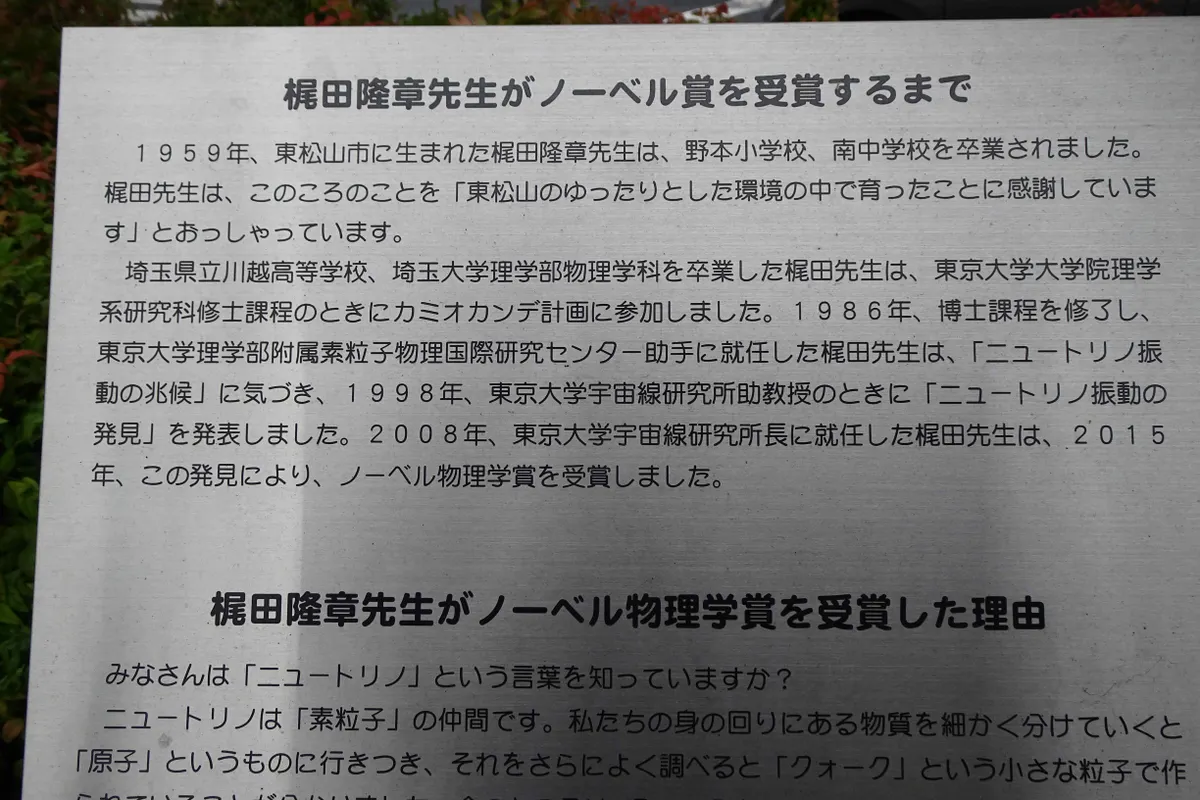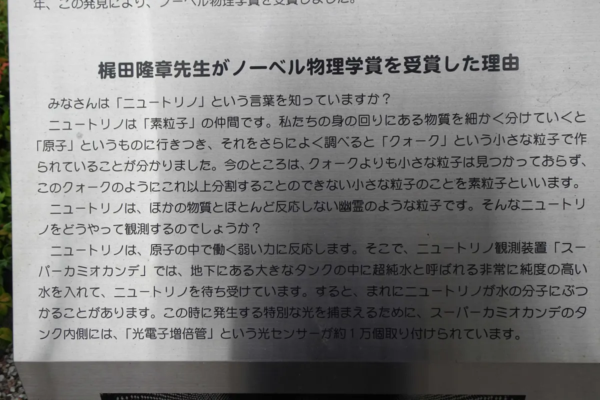 トップ > ヱビスフォト > 季節の写真 > ニュートリノの碑 なおなおっぴ 2025/09/28 00:25 ニュートリノの碑 東松山はニュートリノでノーベル物理学賞をもらった梶田先生の出身地ということで、公園の一角に碑と銘文がありました。 8月10日曜分の投稿はまだ続きますが、それは明日以降に。 いいね 共有する 共有する X facebook LINE リンクをコピー コメントする 2 件の返信 (新着順) ミュートしたユーザーの投稿です。 投稿を表示 legacy 2025/09/28 13:18 へー😎👍。 いいね 返信する ミュートしたユーザーの投稿です。 投稿を表示 なおなおっぴ 2025/09/28 19:45 legacyさん 町からノーベル賞受賞者を出すと、うれしいでしょうね。 いいね 返信する ミュートしたユーザーの投稿です。 投稿を表示 legacy 2025/09/28 22:04 そりゃそうですよね😎👍👏。 いいね 返信する ミュートしたユーザーの投稿です。 投稿を表示 のんのんのん 2025/09/28 07:47 なおなおっぴ さん 光電子倍増管 がオブジェになっているとは知りませんでした カミオカンデ 凄いですね !(^^)! いいね 返信する ミュートしたユーザーの投稿です。 投稿を表示 なおなおっぴ 2025/09/28 19:44 のんのんのんさん 今はスーパーカミオカンデが稼働しているので、新たな発見があるかも知れません。 いいね 返信する