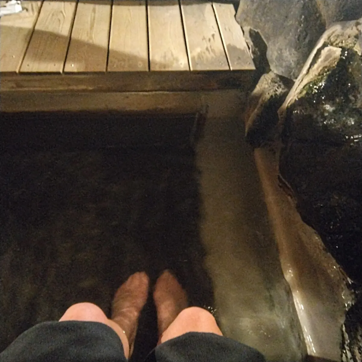 上諏訪駅ホームの足湯にのんびり浸かってますなう(笑)