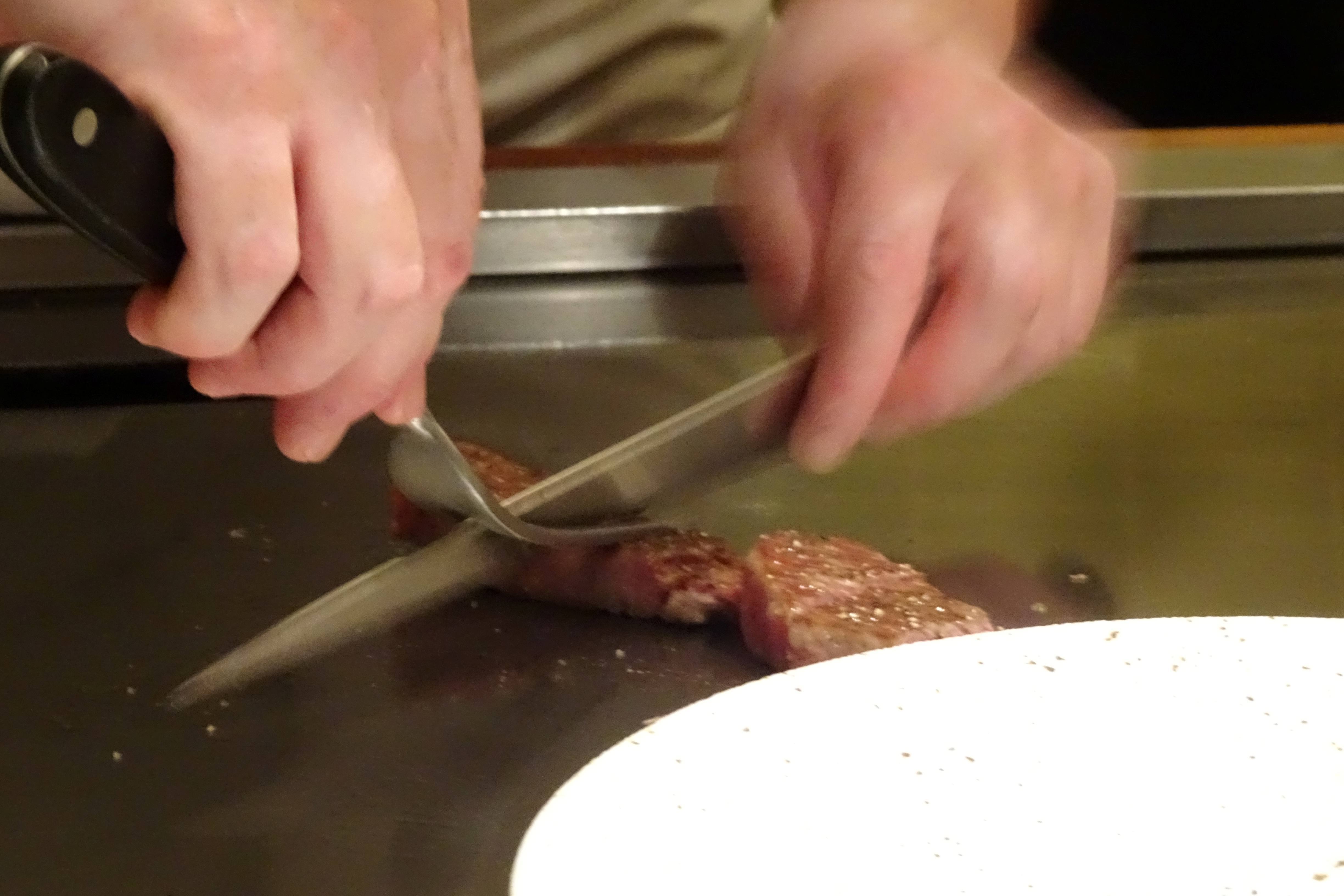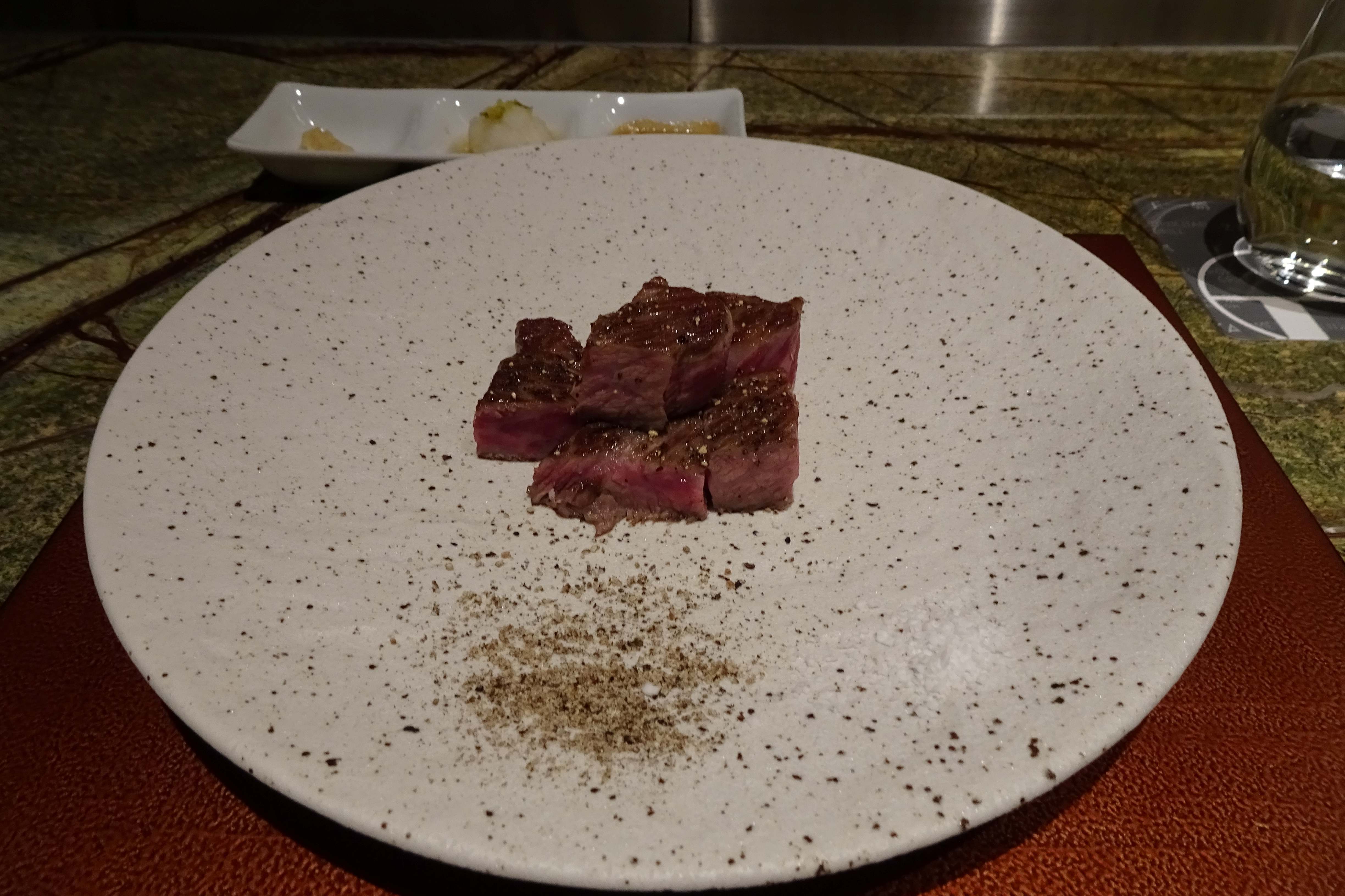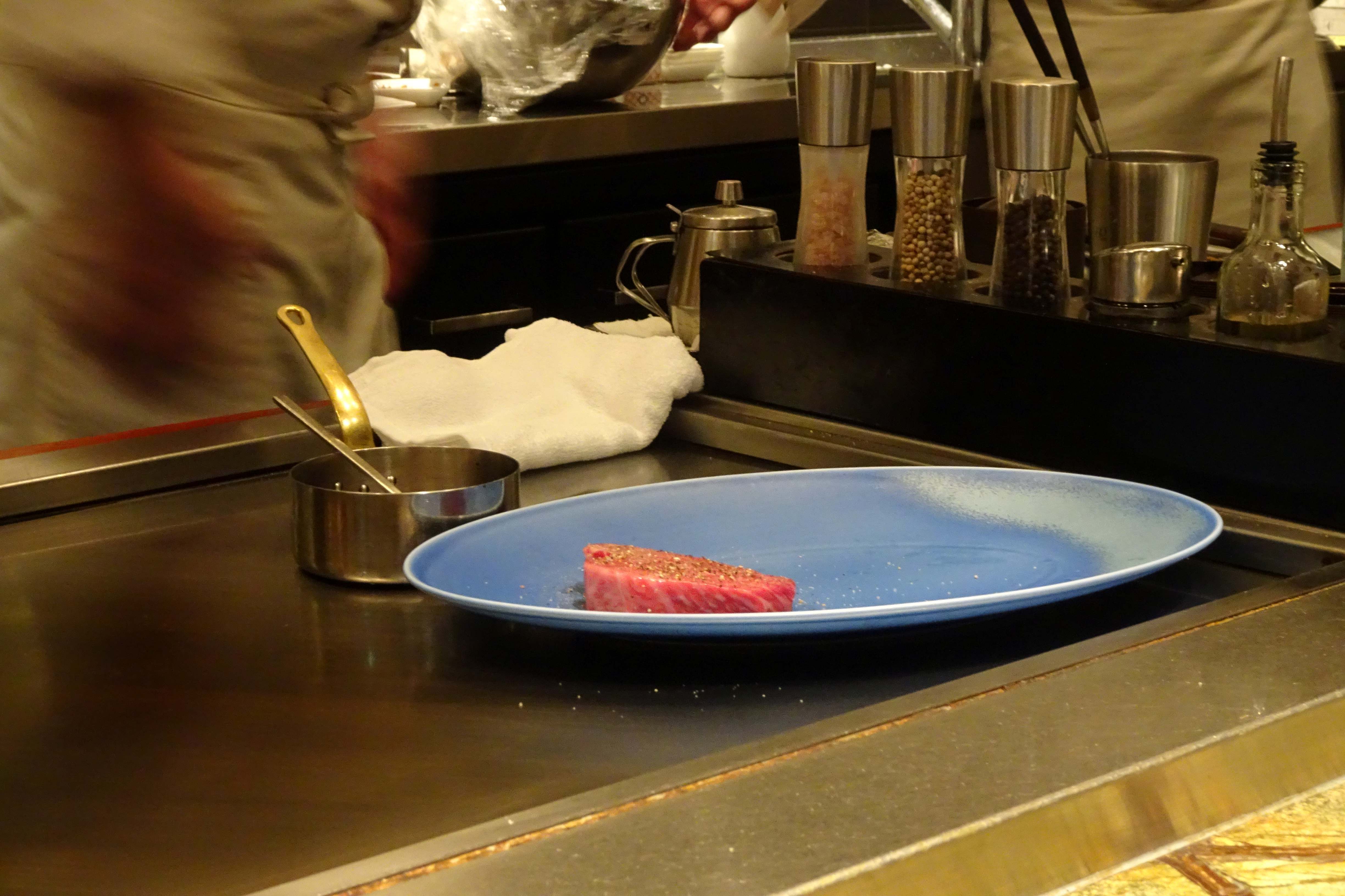 メインの牛肉に塩胡椒をしたところです。