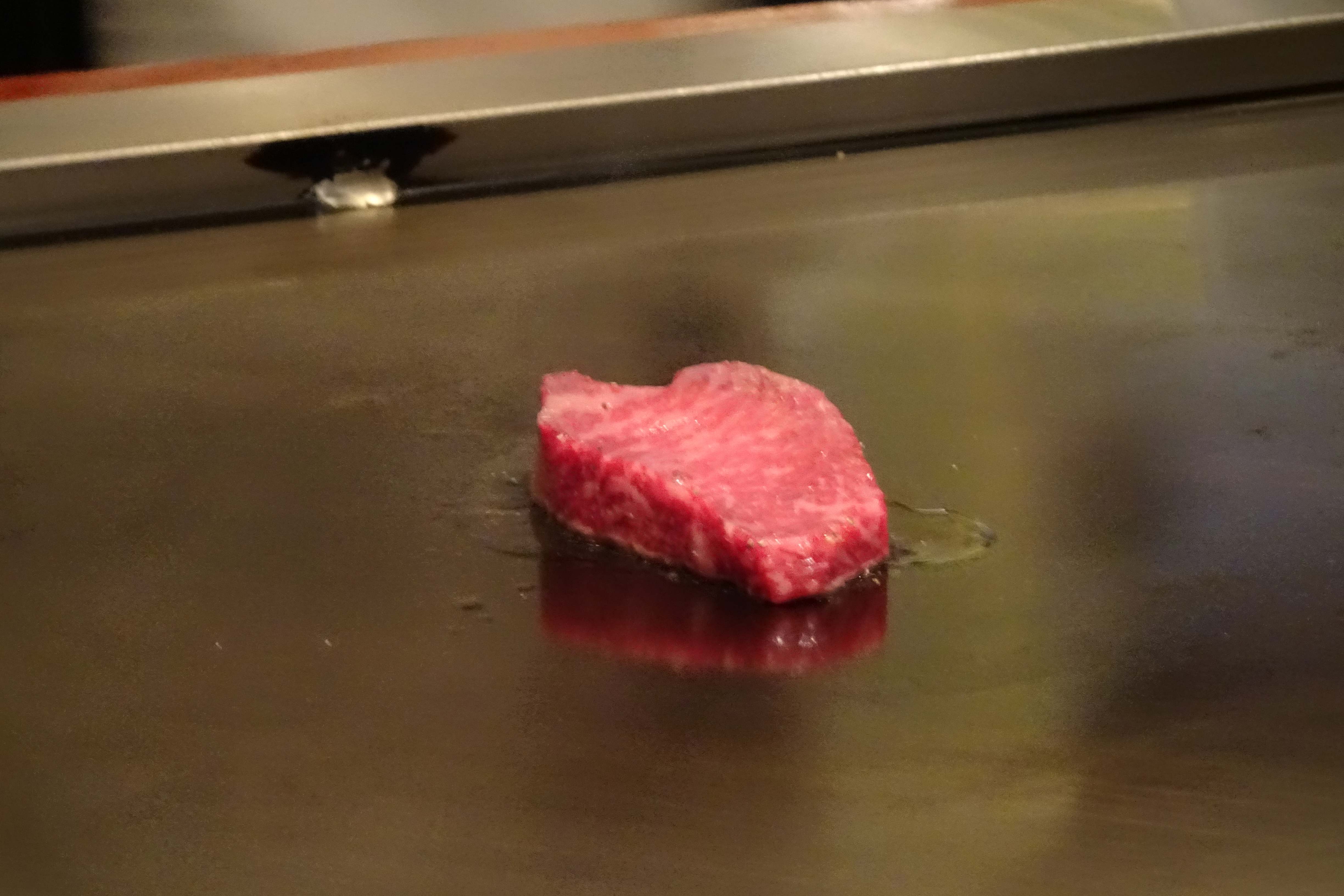 席に座ったところ、横の鉄板で沢山の肉を焼いていて、焼き手の方が「宴会用で」と言っていました。