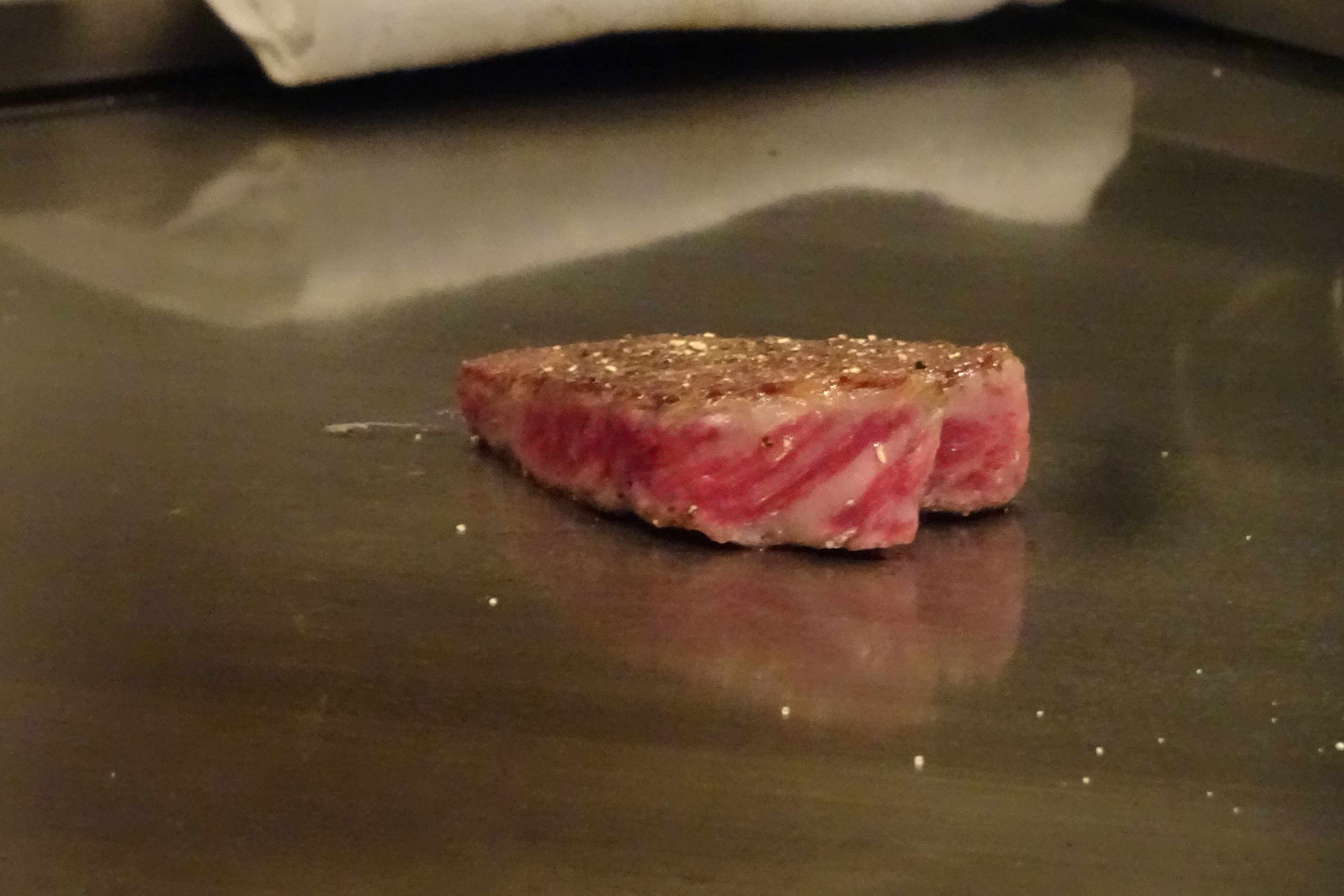 焼き加減はレアにしました。