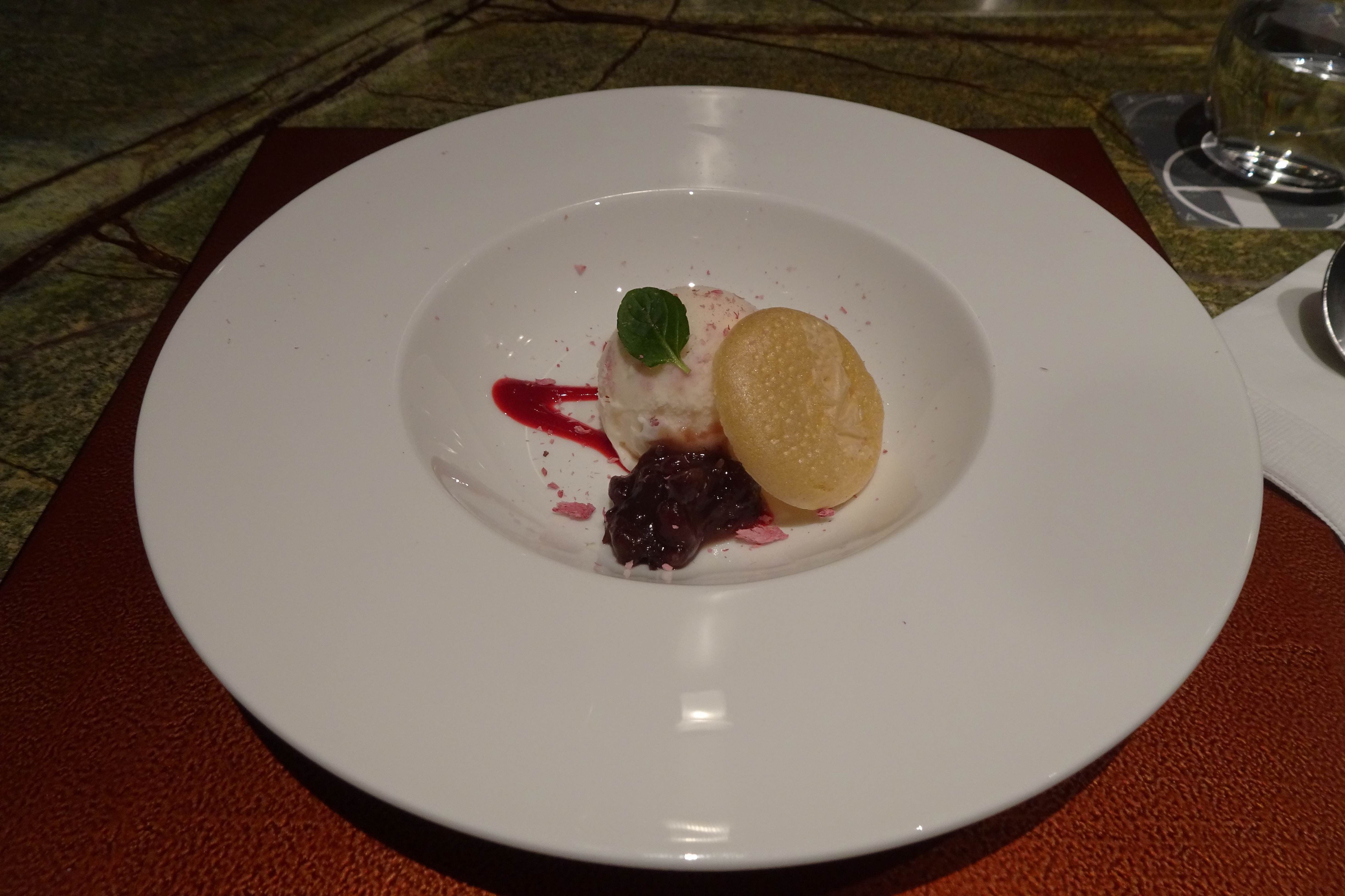 デザートは、苺のアイスのあんこ添えです。