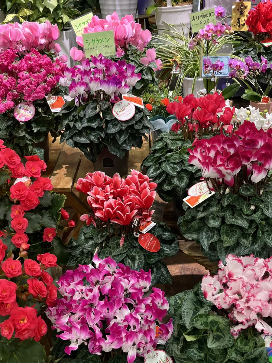 その隣には色とりどり綺麗に 咲き誇るシクラメン