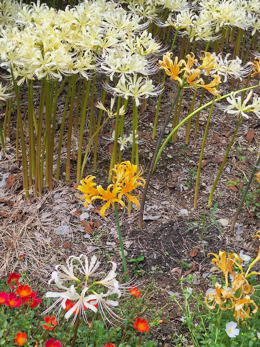 マンジュシャゲ、キツネノカミソリ、ナツズイセン、ショウキズイセンなどたくさん仲間があって