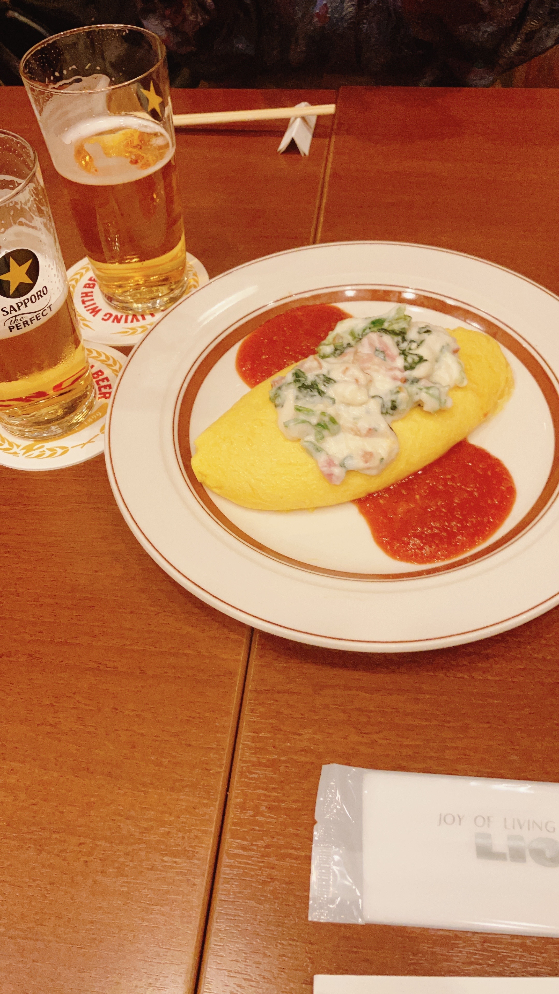 本日は黒ラベルの日。サッポロライオン各店で黒ラベルが終日半額ヤー。次女が黒ラベル派なので今宵は ビヤホールライオン新宿店で飲み会を開催。スピナッチオムレツと唐揚げ、ジャーマンポテト、枝豆をアテに次女との束の間の楽しいひと時を過ごしました。ザ・パーフェクト黒ラベルの美味しさを再認識していた彼女に微笑むヱビバ爺はあちきでした。笑