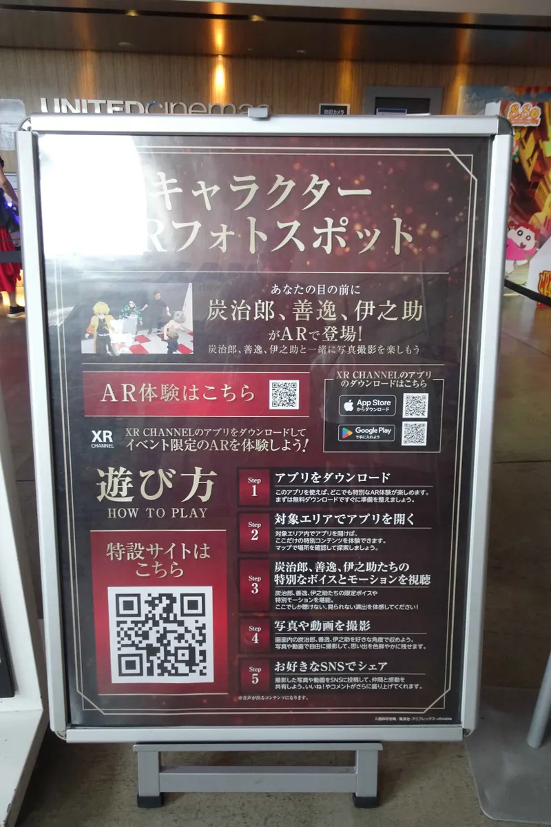 館内で鬼滅の刃のキャラクターのAR体験もできます。