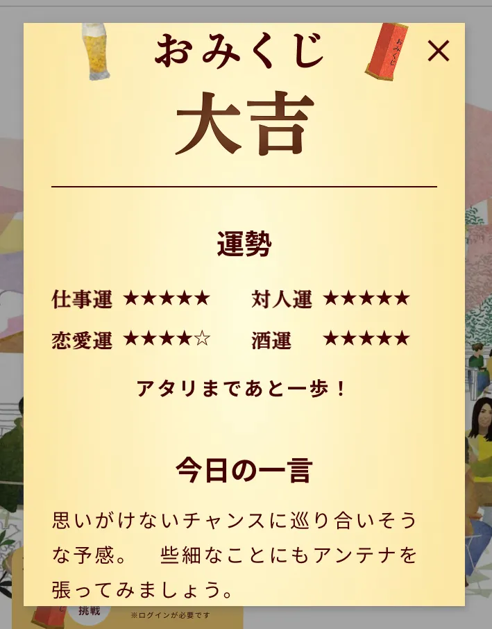 大吉だったんですよ。なんだか変じゃないですか? 少し前まで「半凶率3割強」を誇っていたのに、今週は「大吉率が4割近い」なんて。ひょっとして、おみくじ調子が悪い?