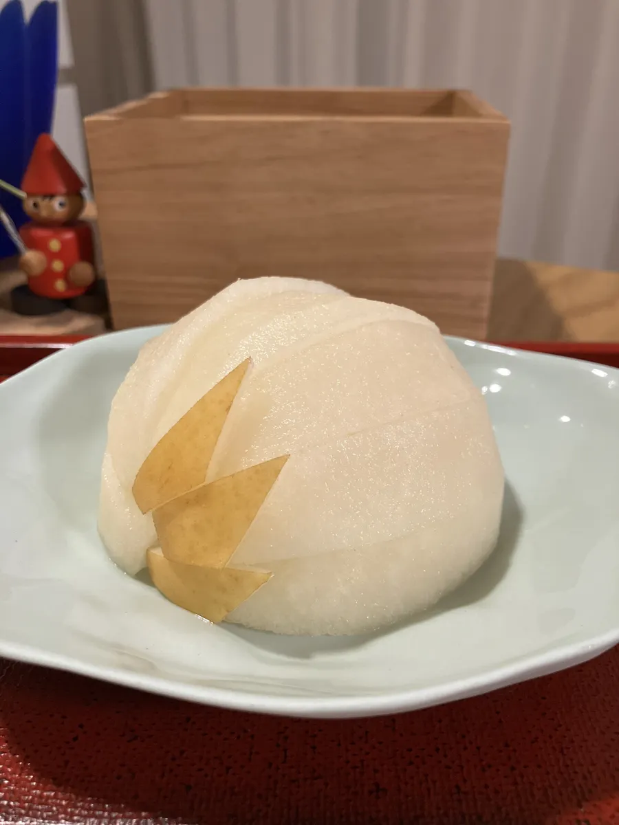 今までは自分が剥いて出すのが当たり前でしたが‥何も出来ないと思っていたら‥目の前でするすると‥何だか感動してしまいました🥺🍐❣️
