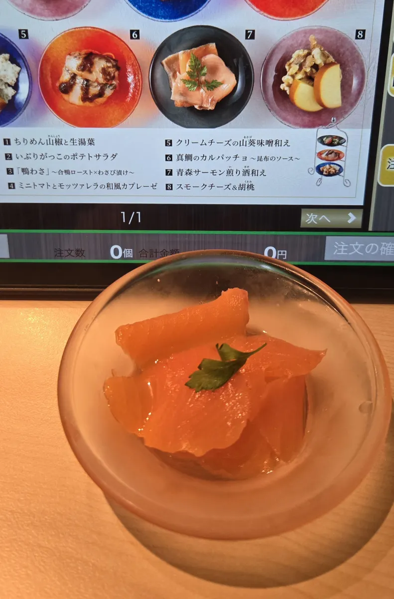 今回選べる冷菜3点盛合せに新しく加入した新メニュー。冷菜3点盛合せも30円値上げしていまして、1品あたり480円ななってしまいました😅