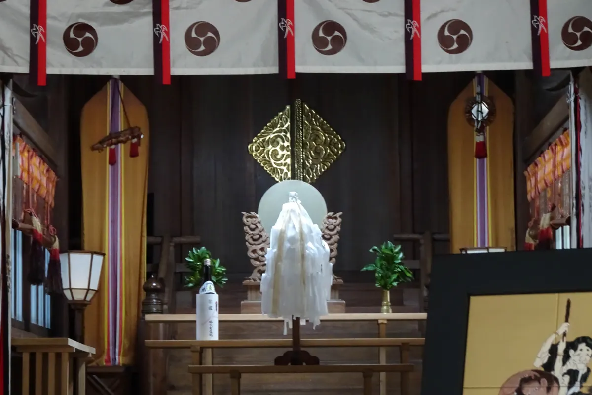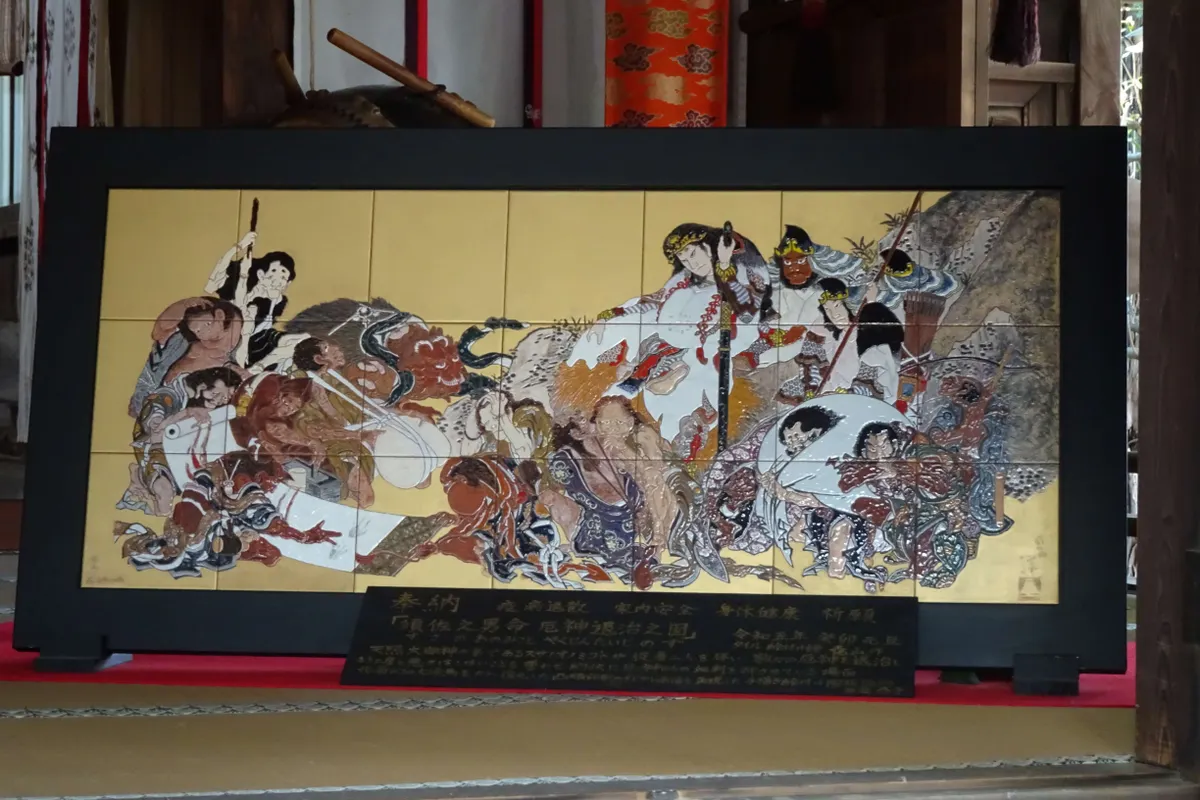 拝殿の中に素戔嗚尊(すさのおのみこと)の活躍が描かれた額があります。