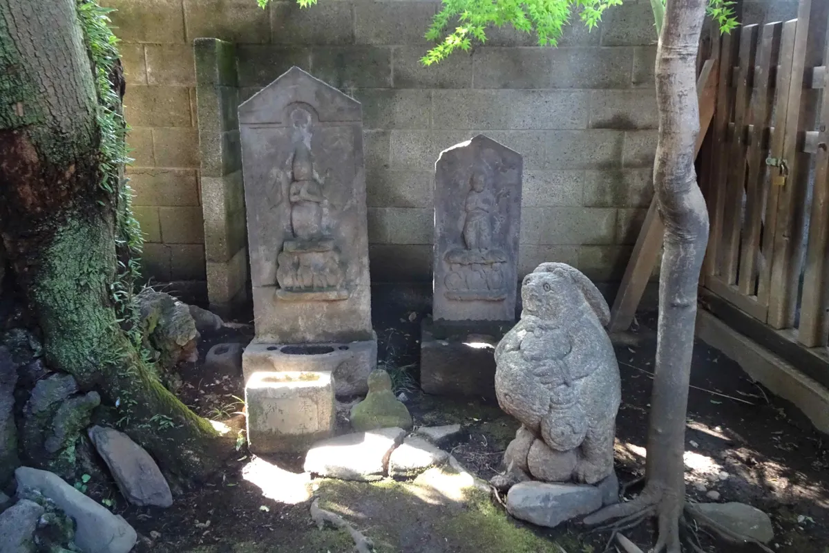 なぜか仏様とともに狸の石像が。