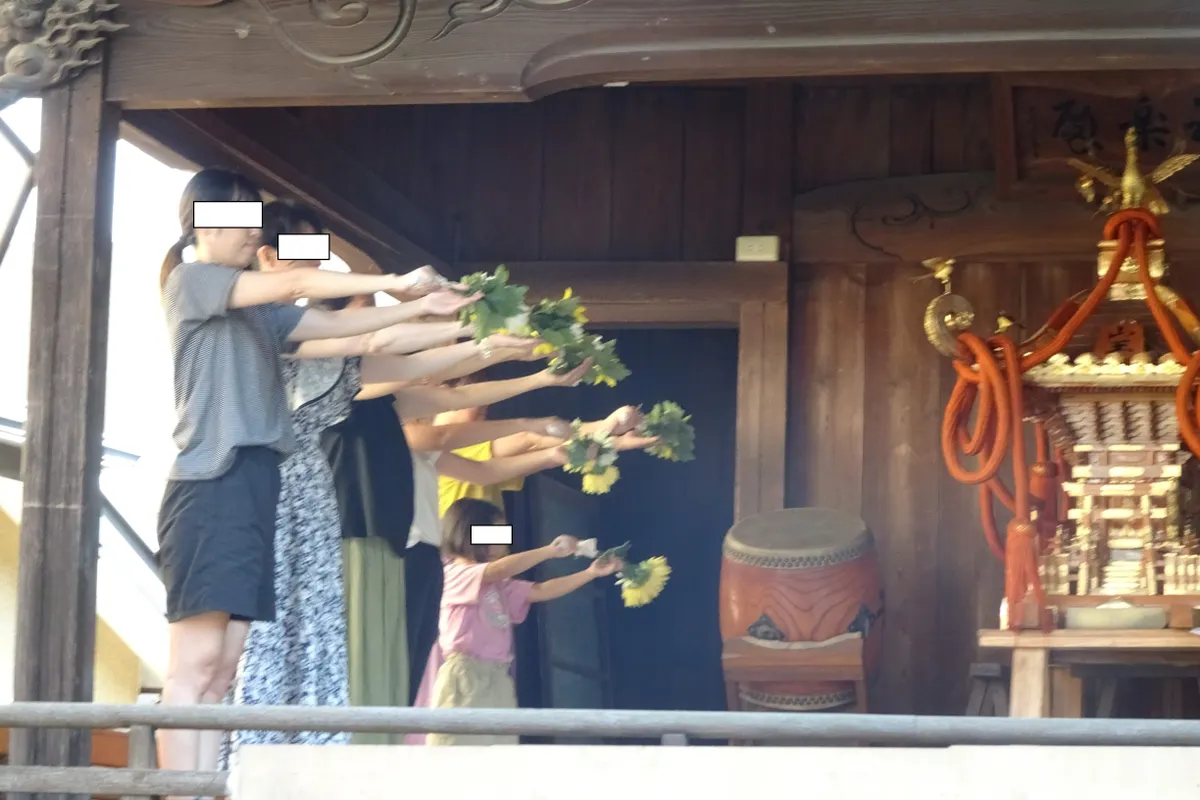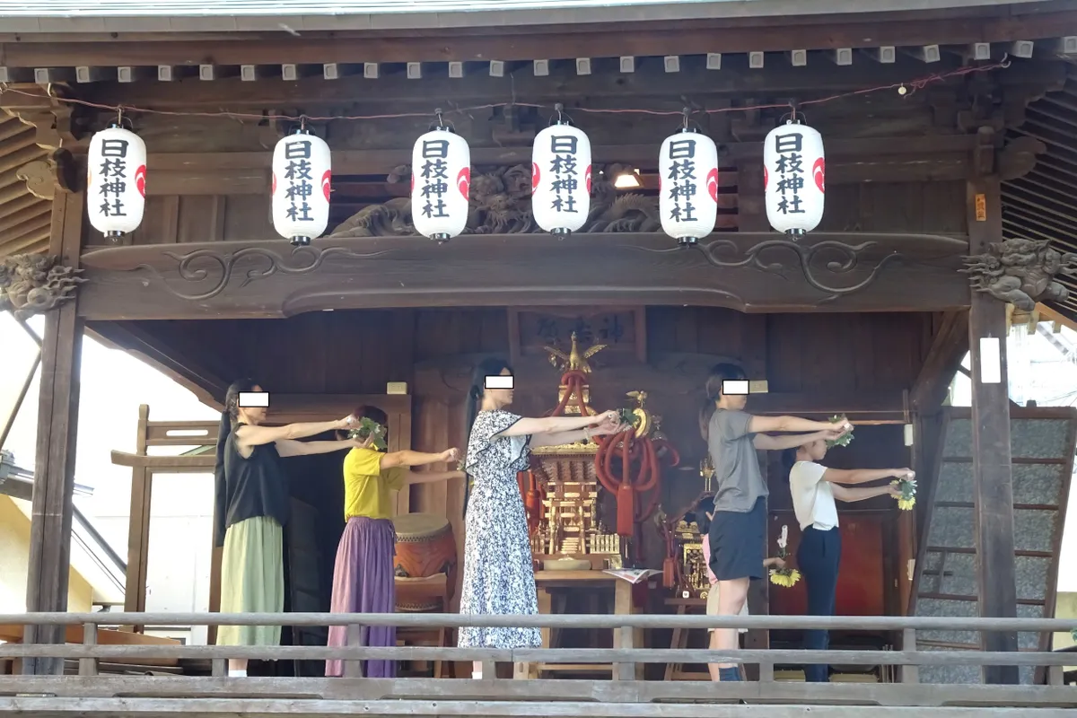 秋のお祭りの前なのか、神楽殿で舞の練習をしていました。