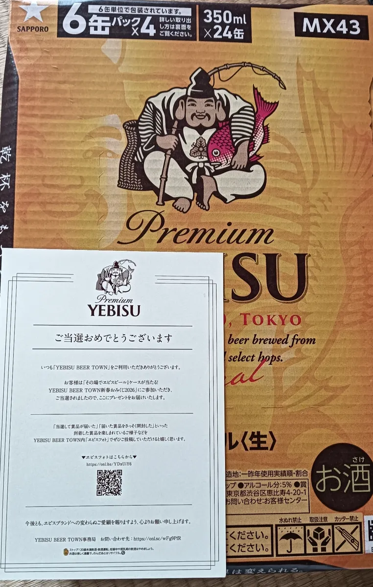 トップ > ヱビスフォト > ヱビス > 当たりが続きエビス運⤴️中 にね☆彡 2026/02/20 20:33 当たりが続きエビス運⤴️中 年末に買ったケースに入ってた荒木飛呂彦さん原画デザイン缶の当たりハガキ、締切ギリギリ発送でしたが間に合い無事届きました(≧∇≦)/ 飲むのが勿体ない。 更に年明け、おみくじの当たり大吉の景品も届きました(^^)v エビス様、毎日美味しいビールと食事をありがとうございます🙏 いいね 共有する 共有する X facebook LINE リンクをコピー コメントする 1 件の返信 (新着順) ミュートしたユーザーの投稿です。 投稿を表示 瞹❣️ 2026/02/21 08:46 ダブル当選👍️すごい!🎉 おめでとうございます🙇 いいね 返信する ミュートしたユーザーの投稿です。 投稿を表示 にね☆彡 2026/02/22 08:24 ありがとうございます♪ お家でエビス三昧です😊 瞹❣️さんにも恵比寿様の御利益がありますように🙏 いいね 返信する